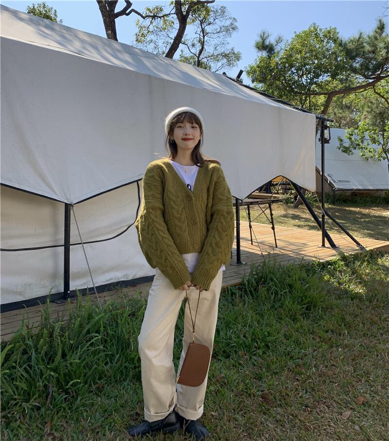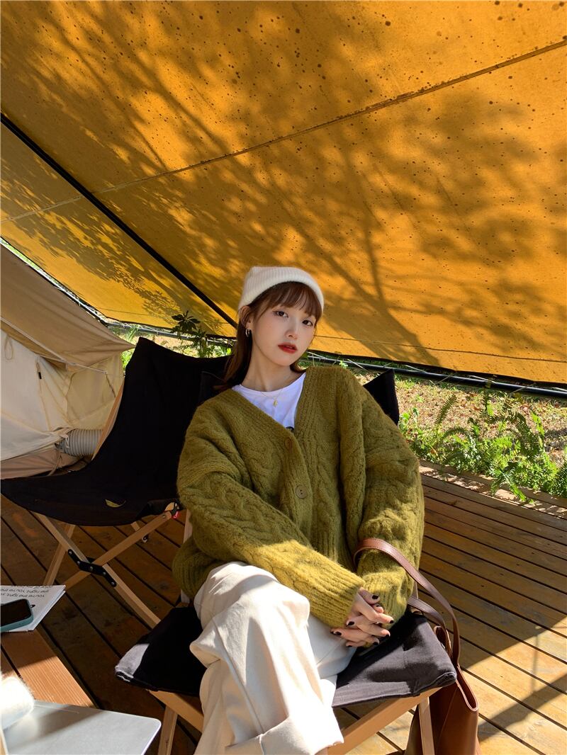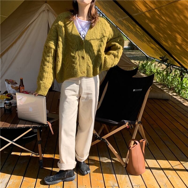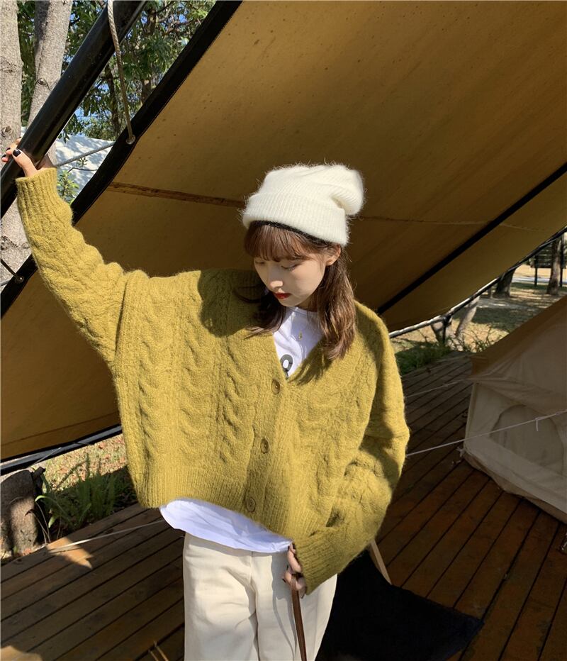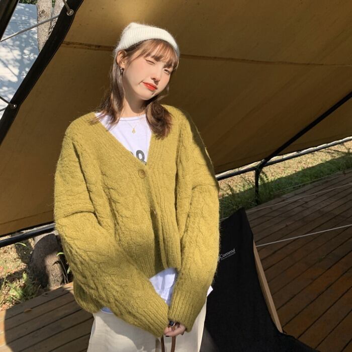 Vネックセーター ルーズショートカーディガンジャケット オータムウィンターニットトップス ロング 秋物 冬物 モンロー88569947731