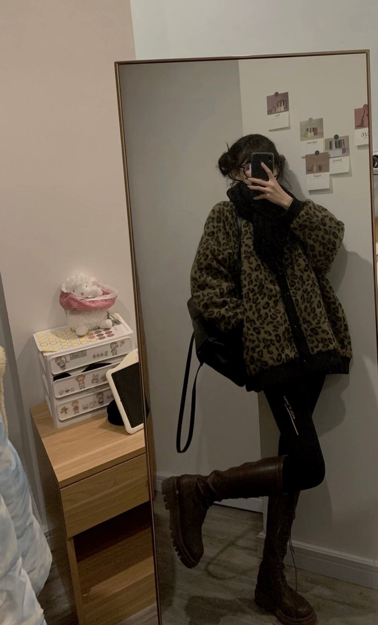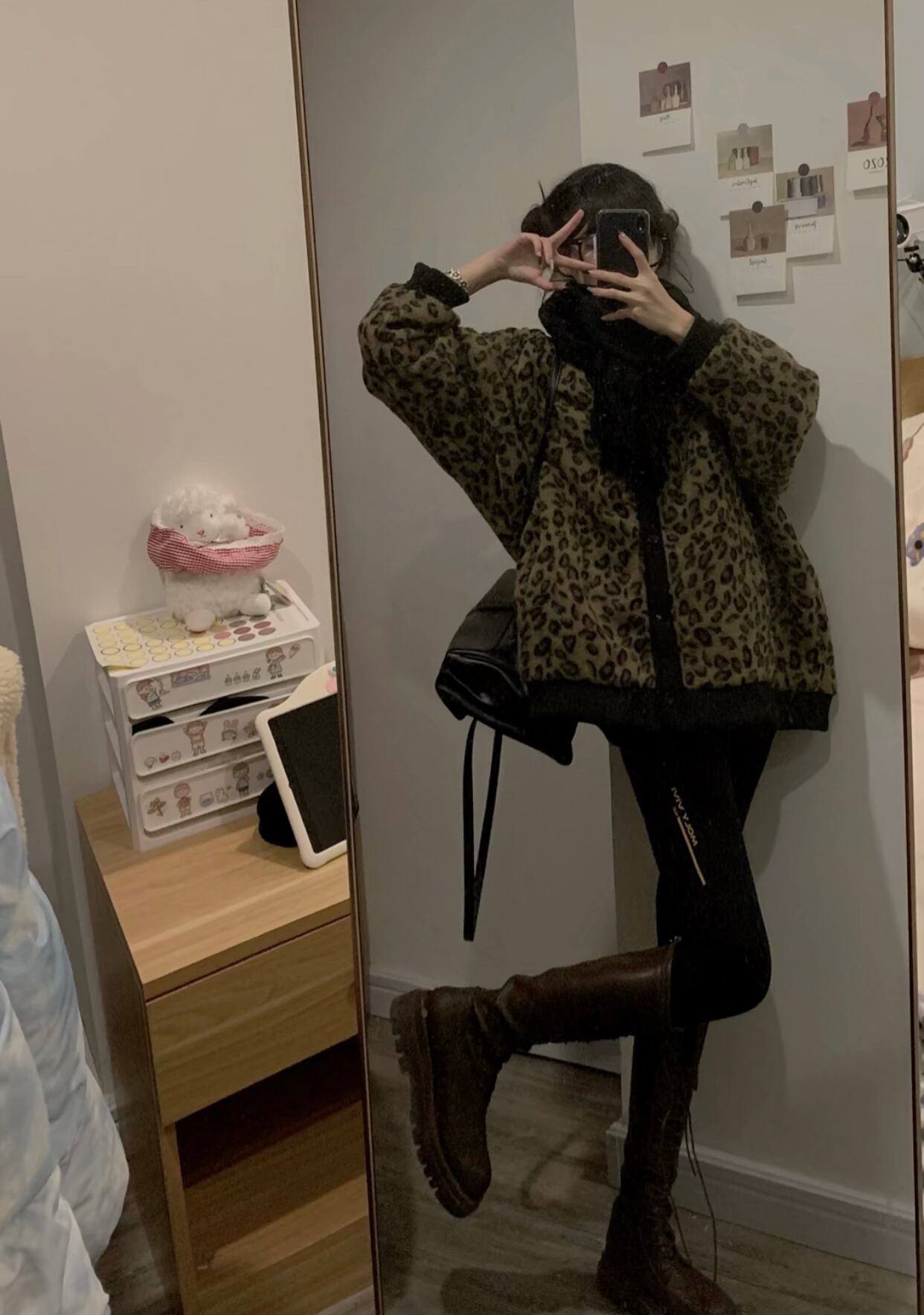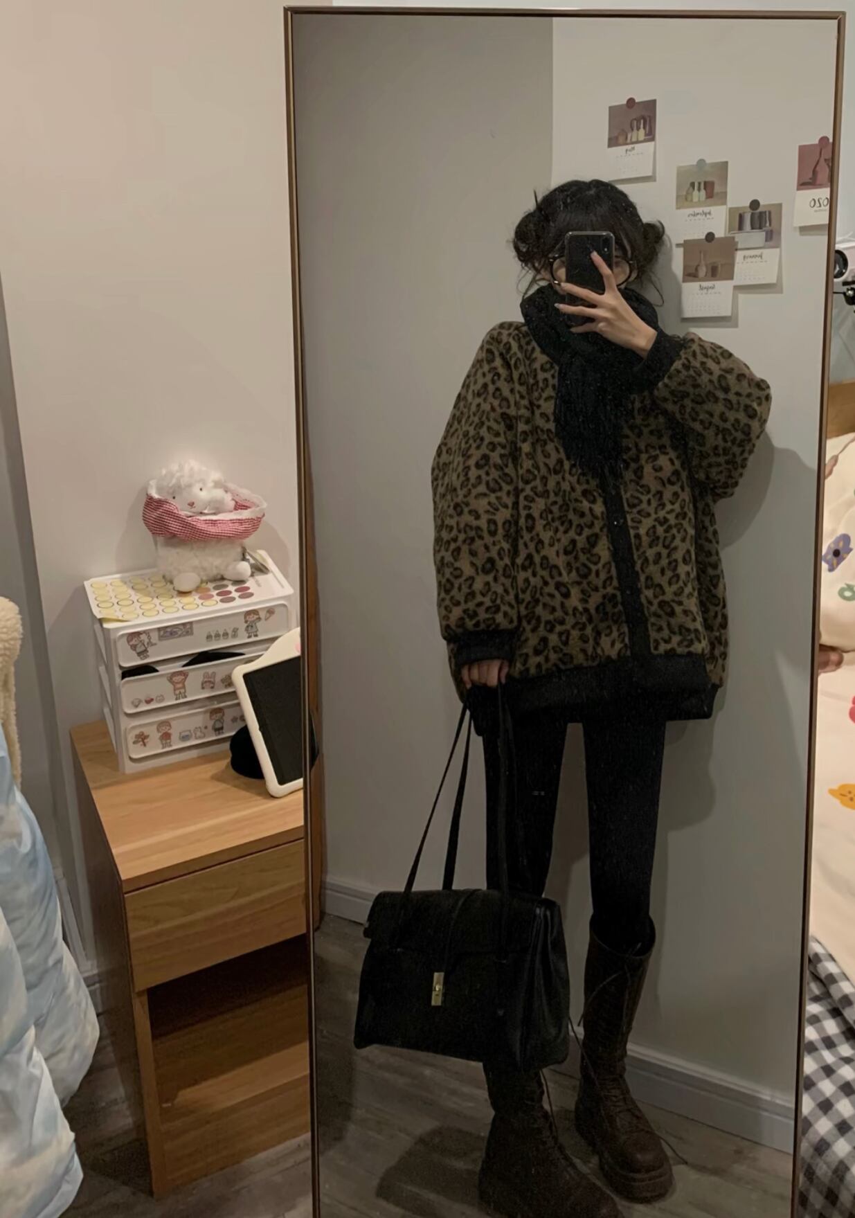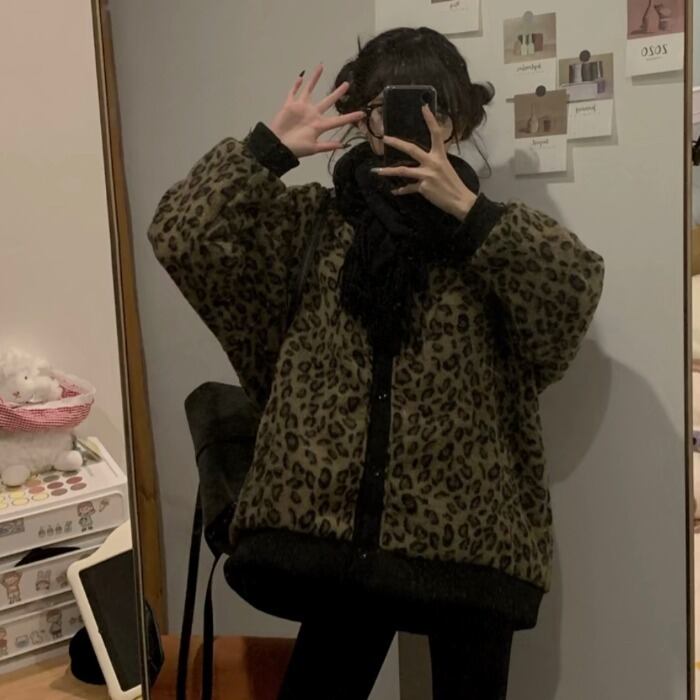 スタンダードスタイルレオパードプリント柄コート オータムウィンタールーズ レトロ 秋物 冬物 モンロー22459491268
