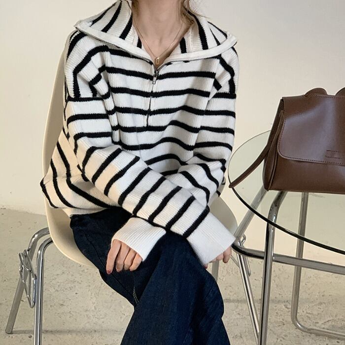 スタイルストライプセーター トップス オータムウィンタールーズジャケット 秋物 冬物 モンロー34016246326