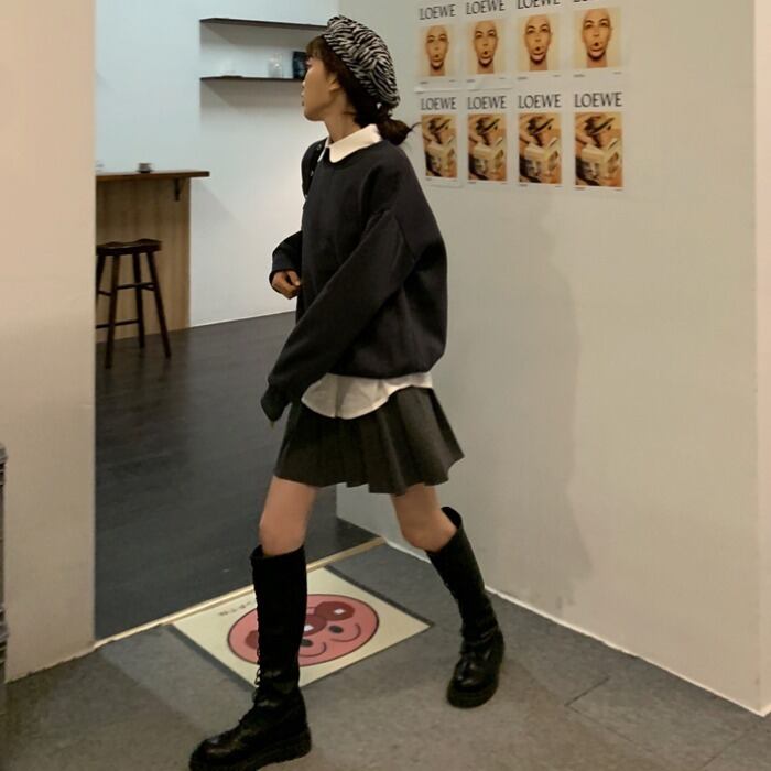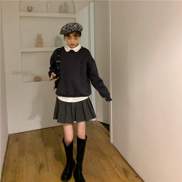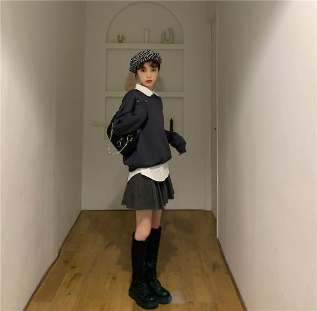色:豪華なグレーのセーター,白のシャツ,プリーツスカートSサイズ,プリーツスカートMサイズ