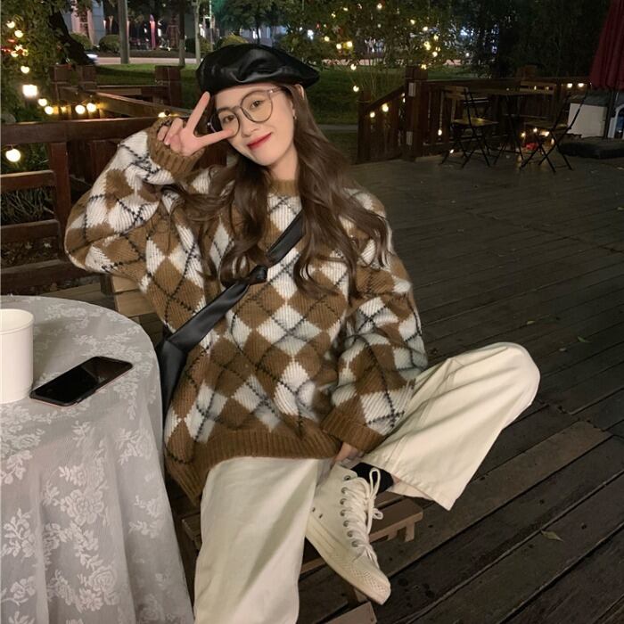 スタンダードセーター ルーズオータムウィンターニットトップス レトロ 秋物 冬物 モンロー64364509742