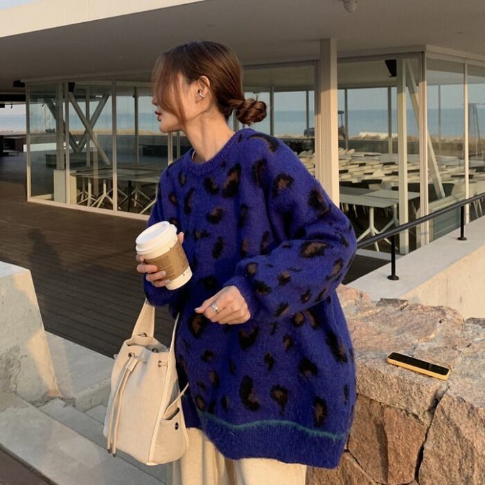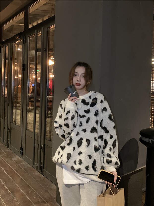 レオパードプリント柄セーター スプリングスタイルニットジャケット ルーズトップス 春物 モンロー8671943416