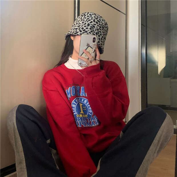 レッドセーター レディースオータムウィンタースタイルベルベットルーズトップス コート 秋物 冬物 モンロー62078169102