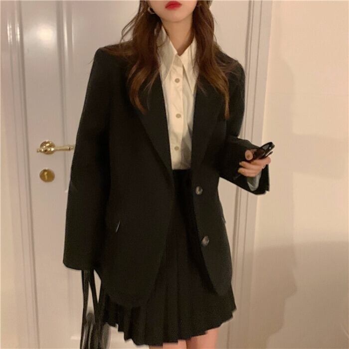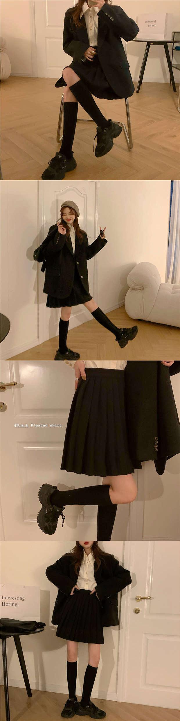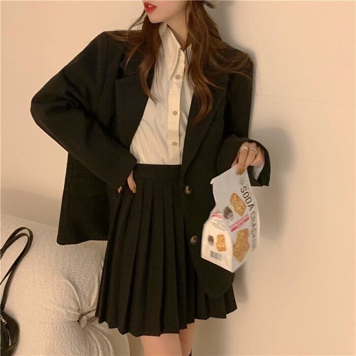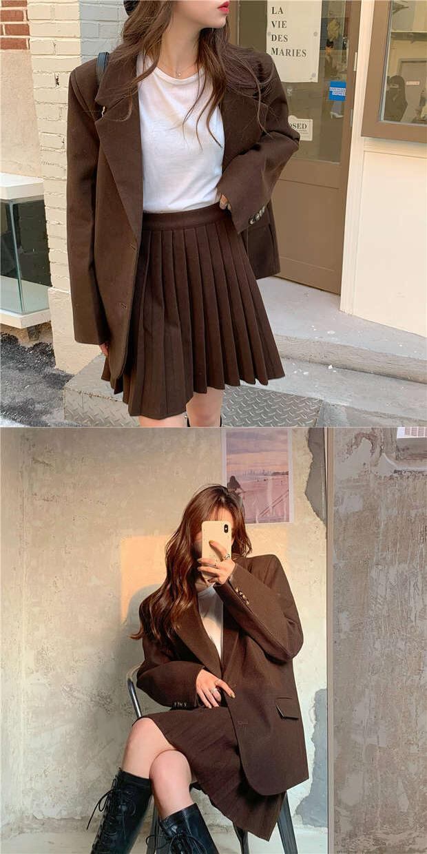 色:黒いジャケット,コーヒージャケット,黒スカート,コーヒー色のスカート