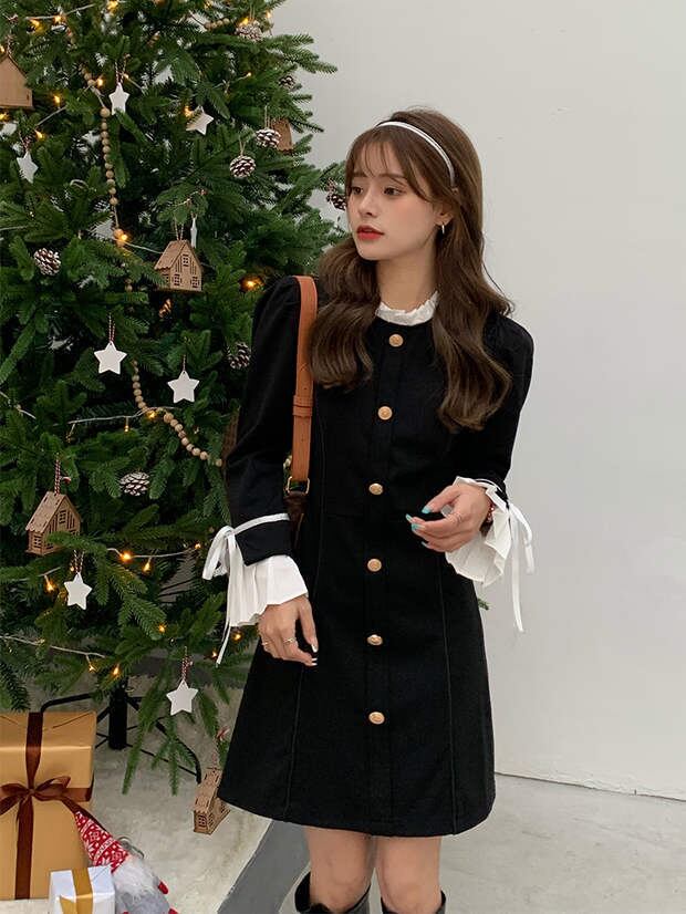 スカート オータムウィンターブラックドレス ワンピース 薄手 ロング 秋物 冬物 モンロー34514025089