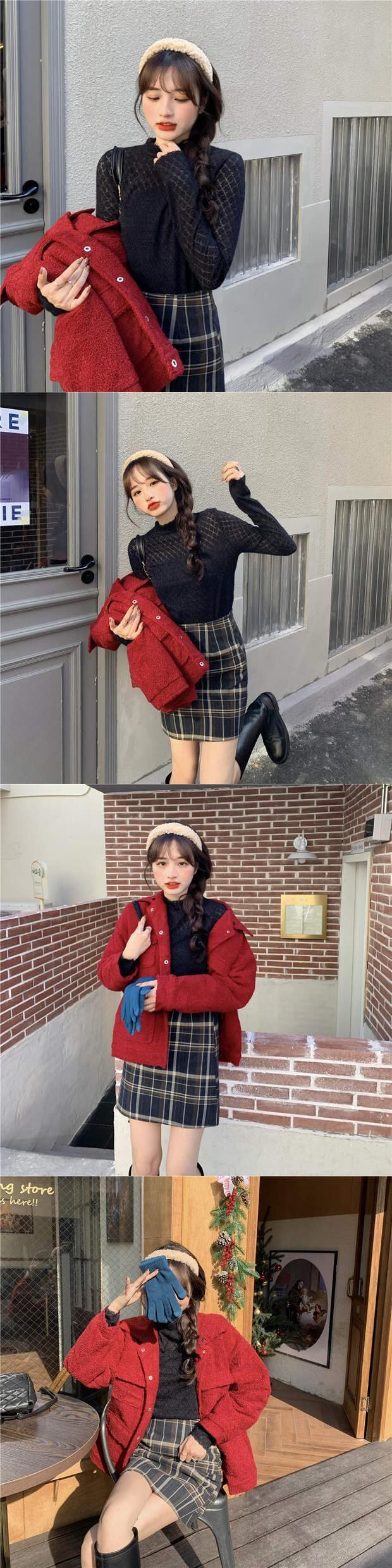 カラーレースシャツ スリムフィットショート ロング ウィンター 冬物 モンロー39629216553