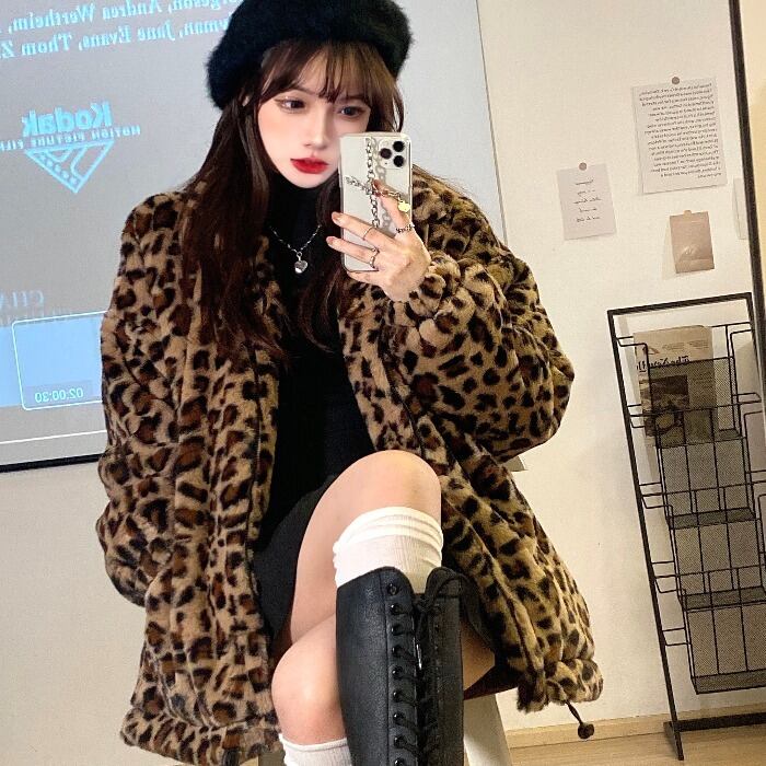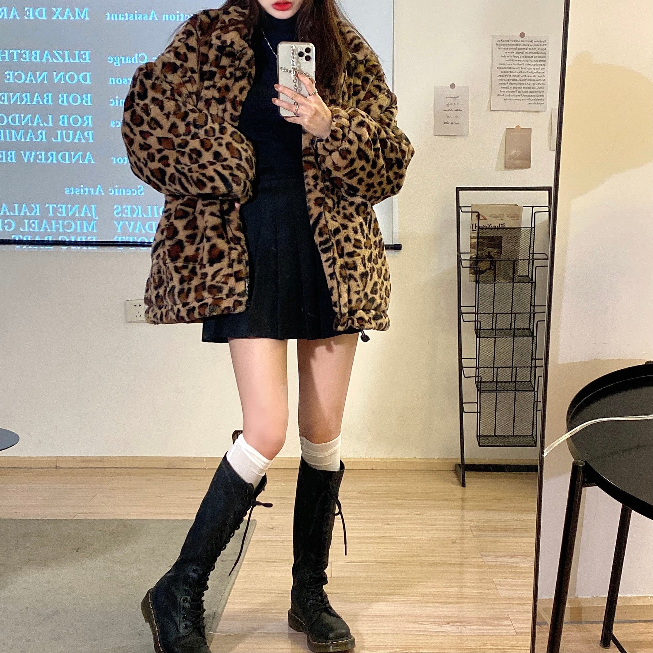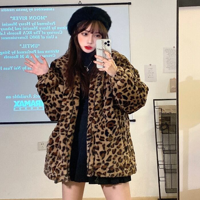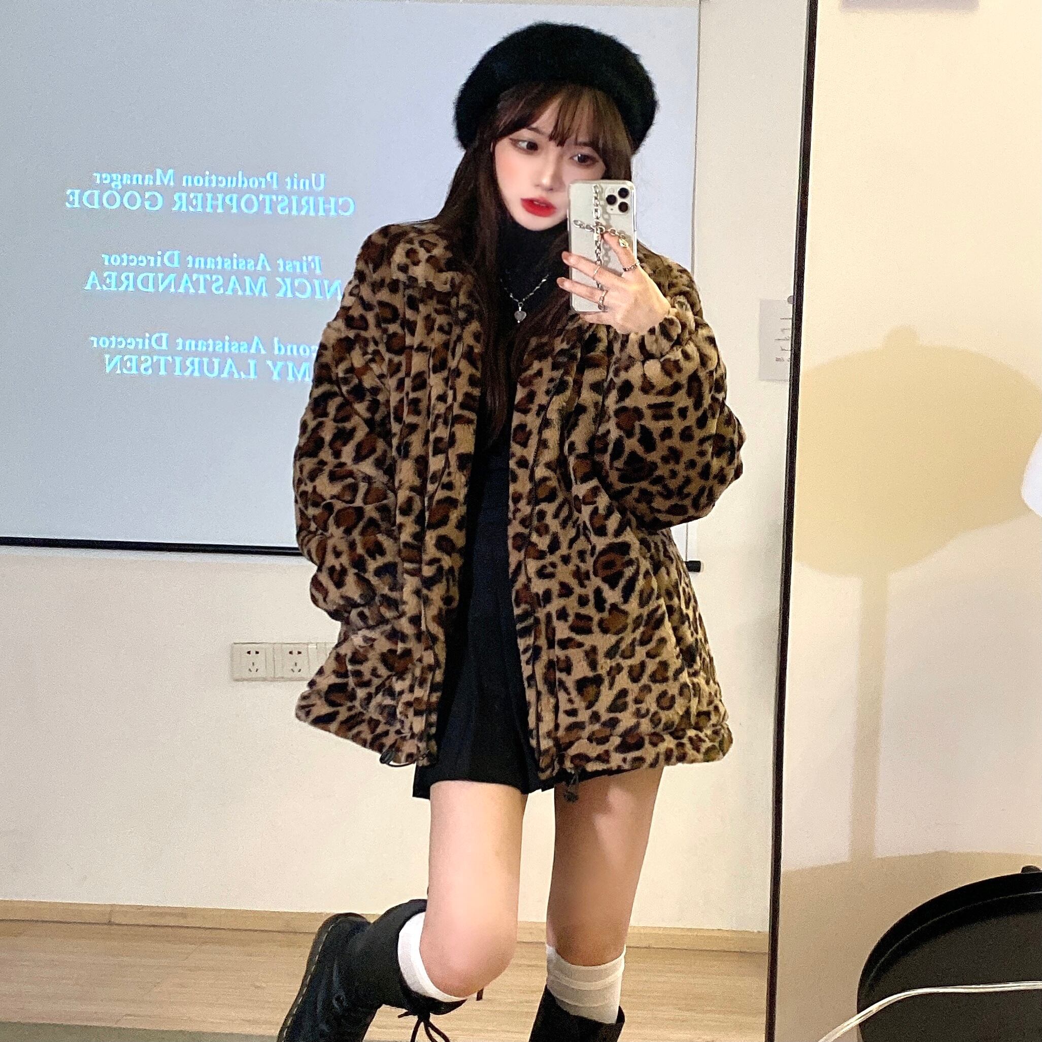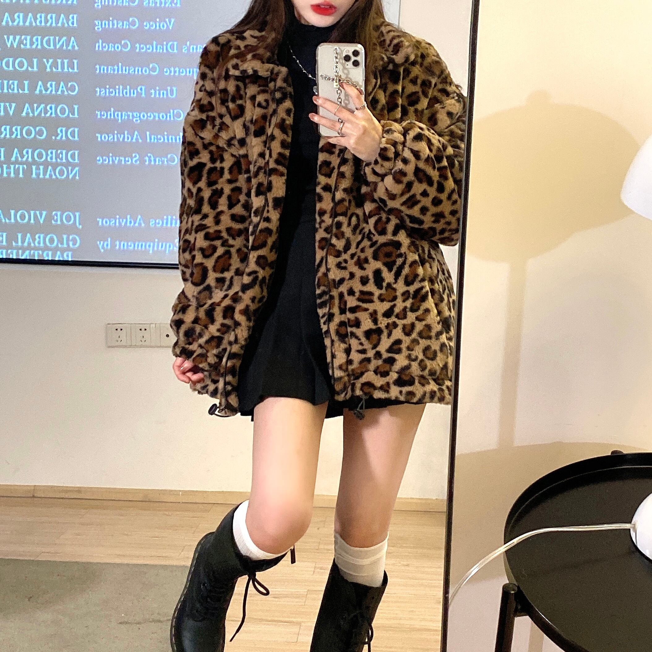 レオパードプリント柄ジャケット レディースオータムウィンターベルベットルーズ 秋物 冬物 モンロー75772711964