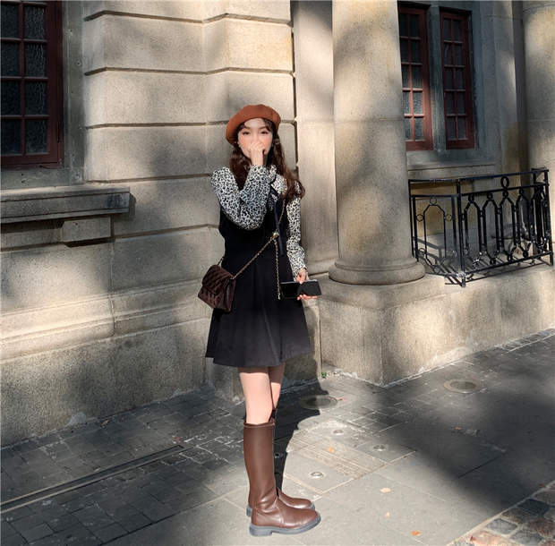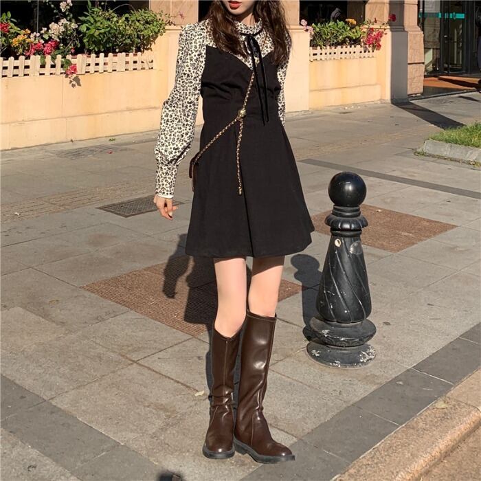 スタンダードフローラルドレス ブラックオータムウィンタースカート ショート レトロ 秋物 冬物 花柄 モンロー84760090505