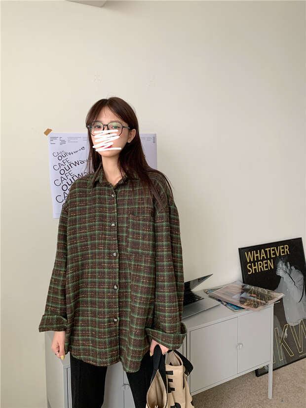 シャツ オータムウィンター格子柄ルーズコート ジャケット ロング 秋物 冬物 モンロー46913319504