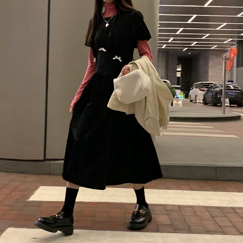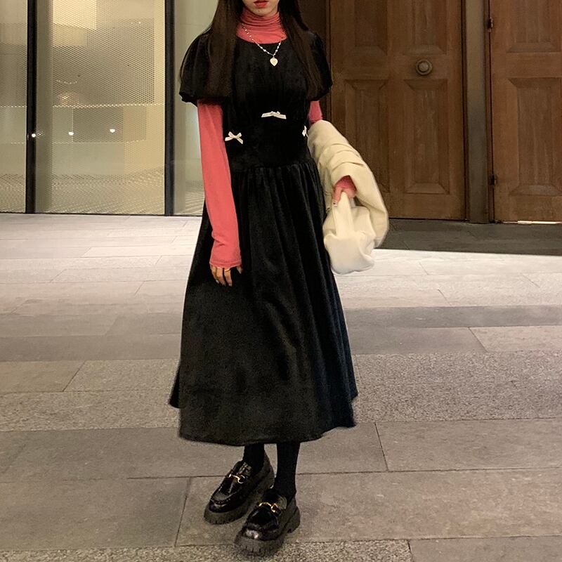 ベルベットドレス オータムウィンターウェスト薄手スカート 秋物 冬物 モンロー73104175153