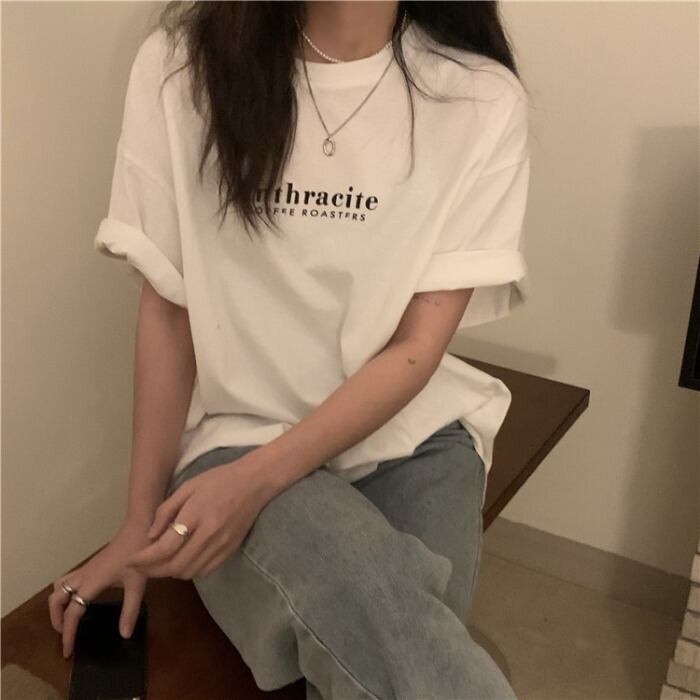 スタイルホワイトTシャツ シャツ ルーズスプリングトップス 春物 モンロー92968449570