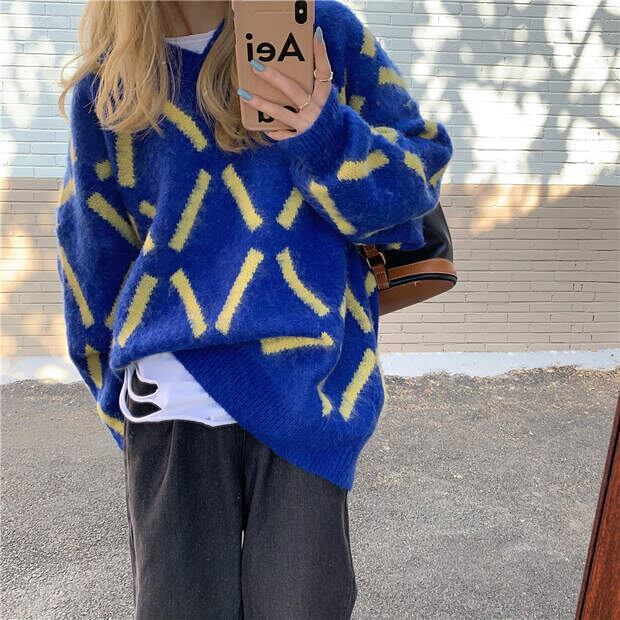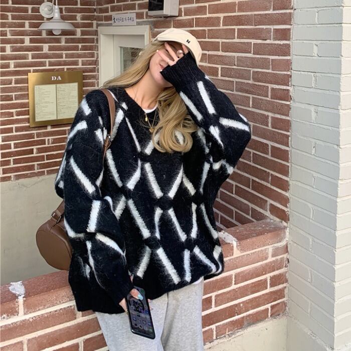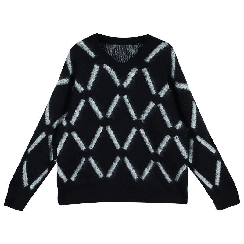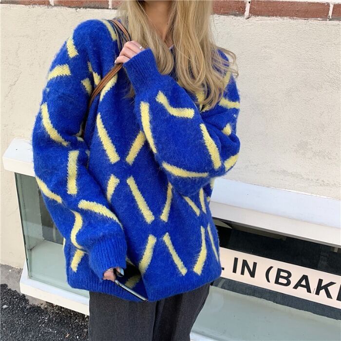 Vネックセーター スタイルルーズニットオータムウィンタートップス ロング 秋物 冬物 モンロー24413805132