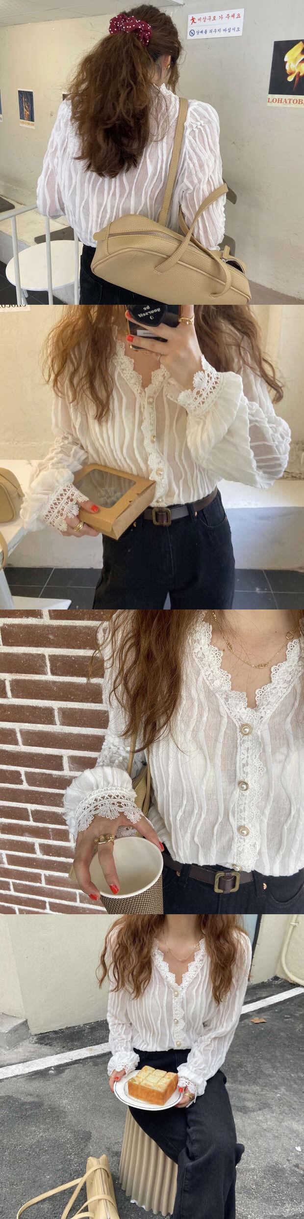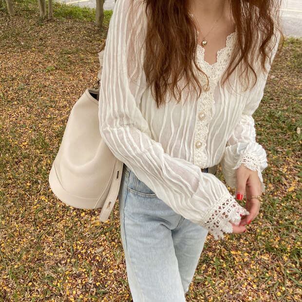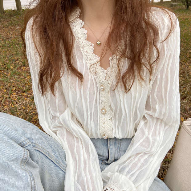 レースシャツ レディースVネックルーズシフォンスタイルオータムウィンタークロップドトップス ジャケット ロング 秋物 冬物 モンロー80733195296