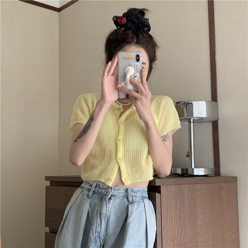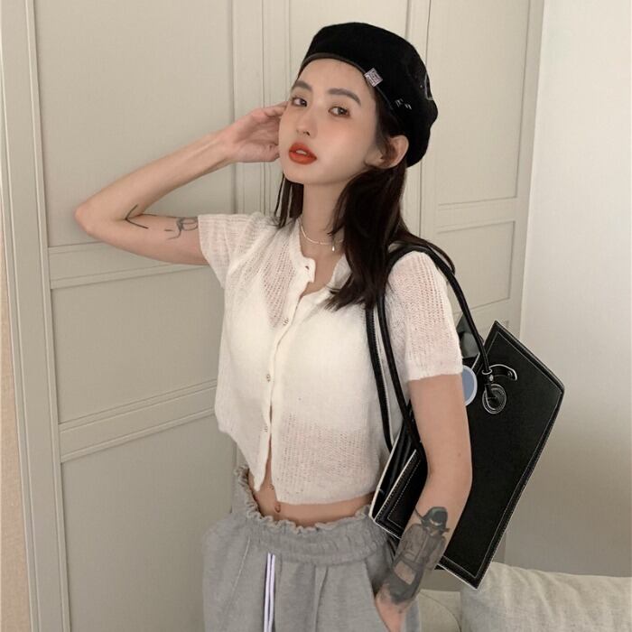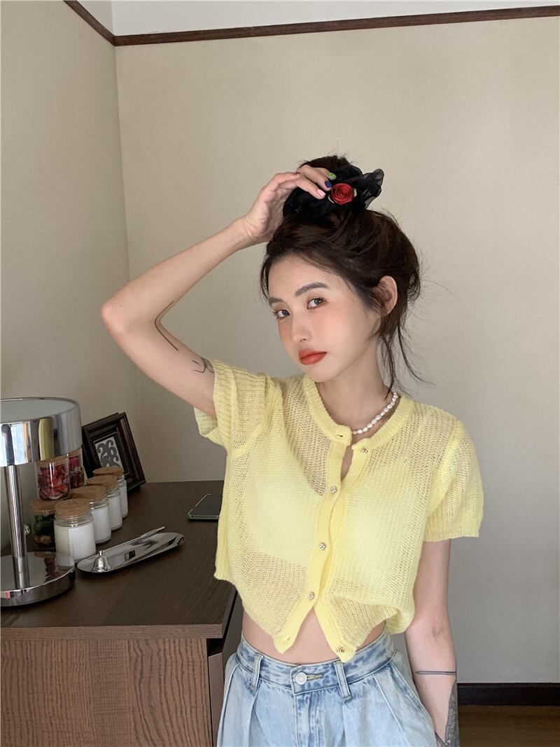 薄手ニットセーター ショートサマークロップドカーディガントップス コート 大人ガーリー スウィート キュート カジュアル 夏物 モンロー32272822250