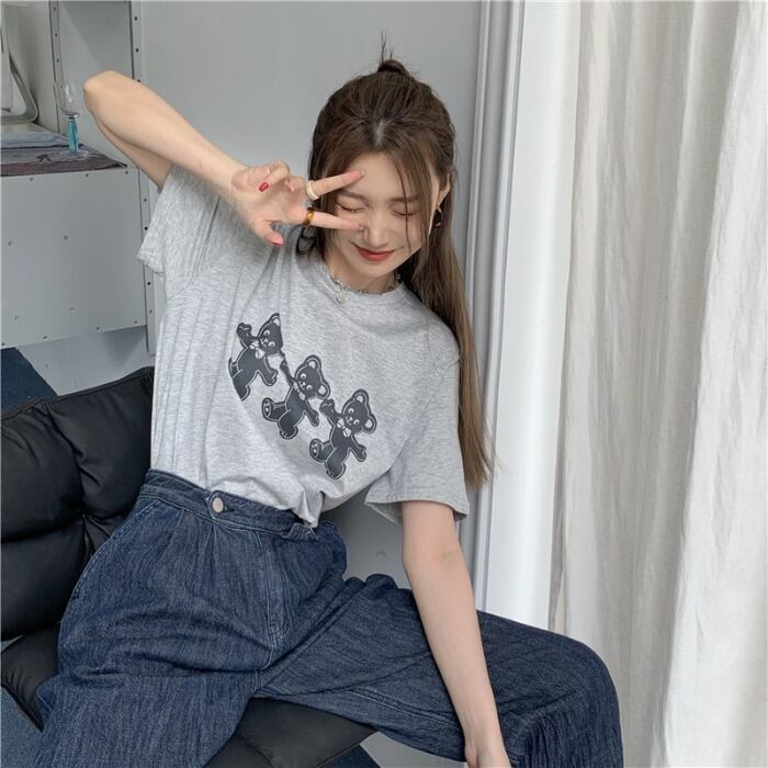 Tシャツ ショートサマープリントルーズトップス コットン 夏物 モンロー13071760814