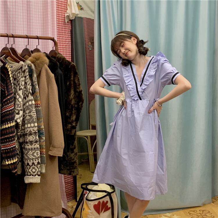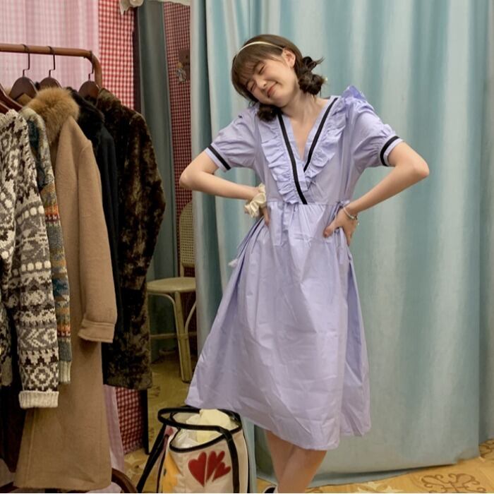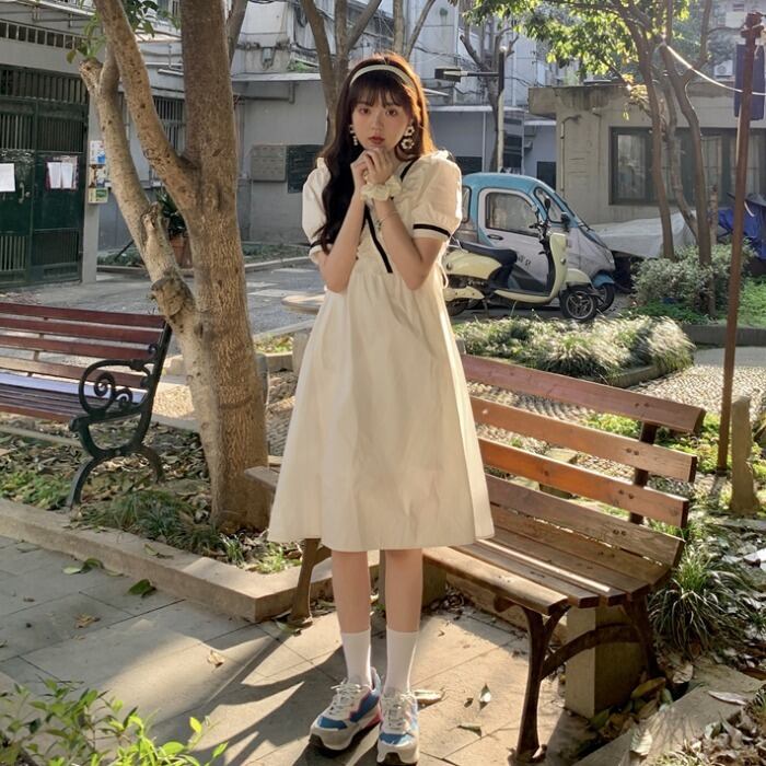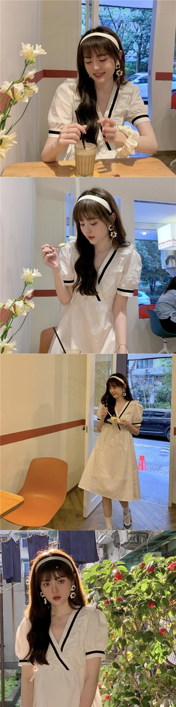 スタンダードVネックホワイトドレス サマー薄手スカート レトロ 大人ガーリー スウィート キュート カジュアル 夏物 モンロー79527295085