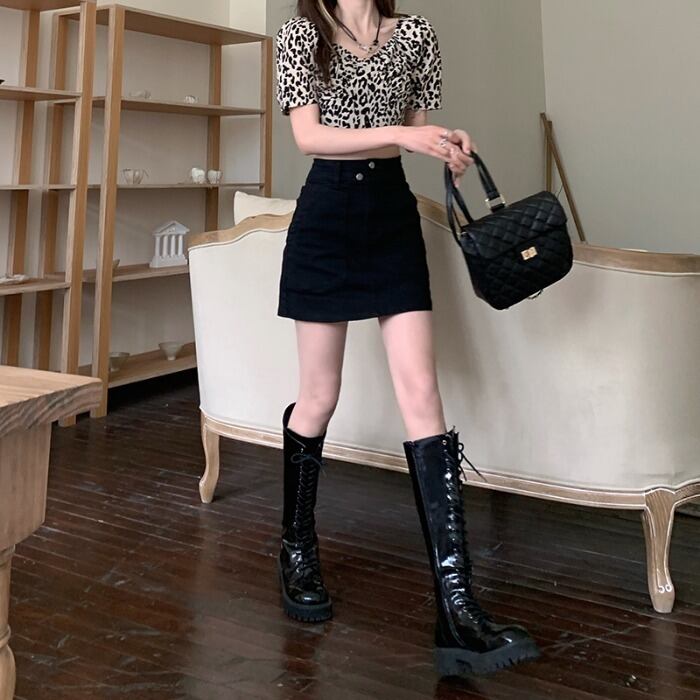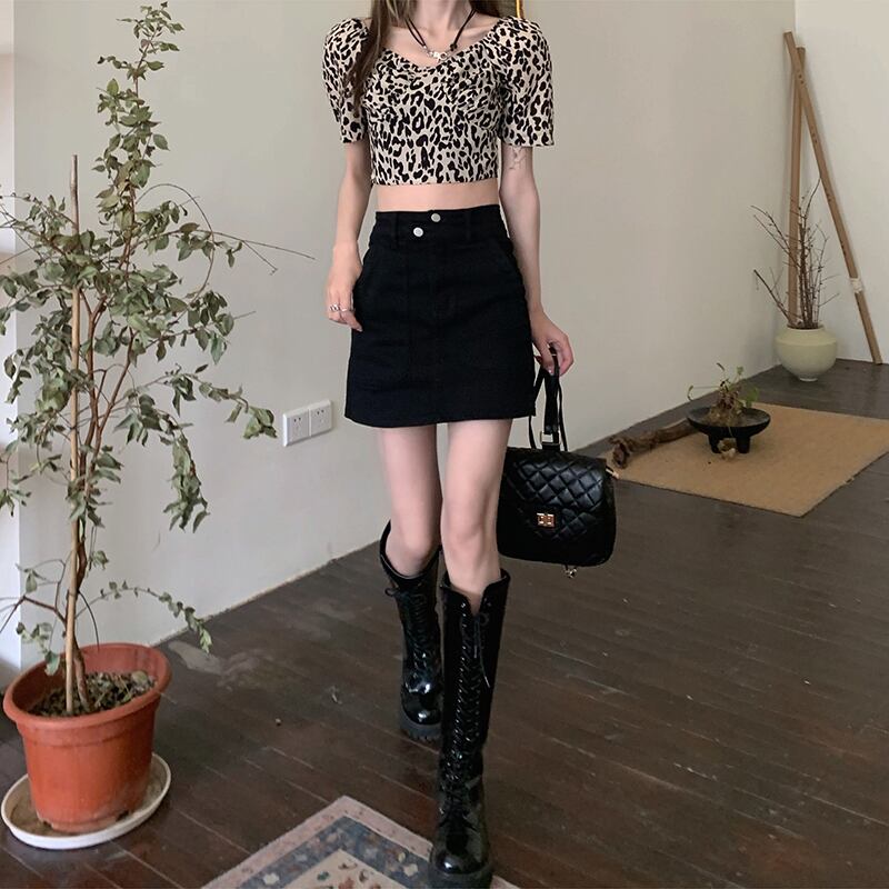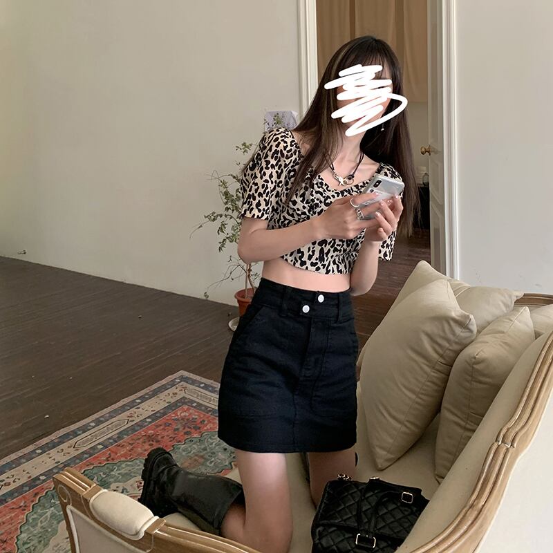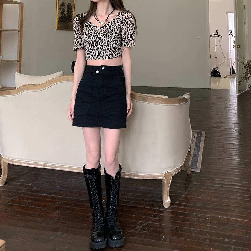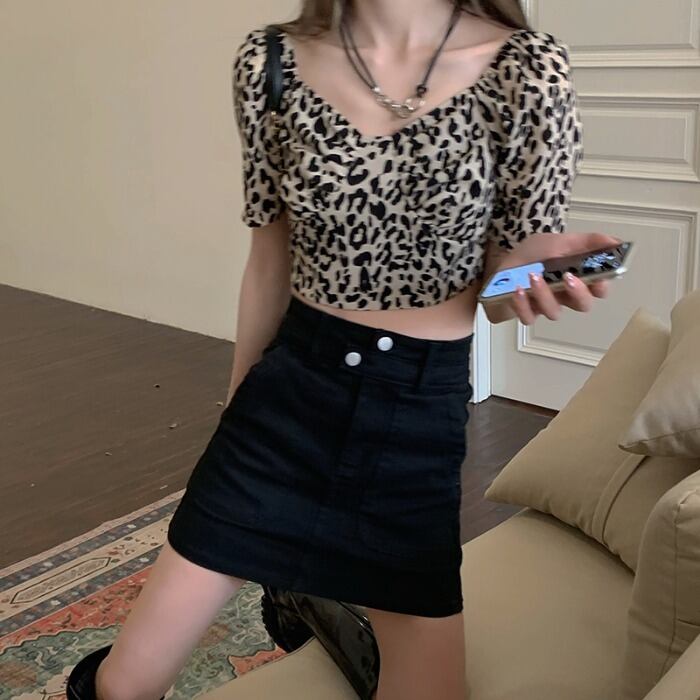 色:ヒョウ柄トップ11095,黒のスカート9086