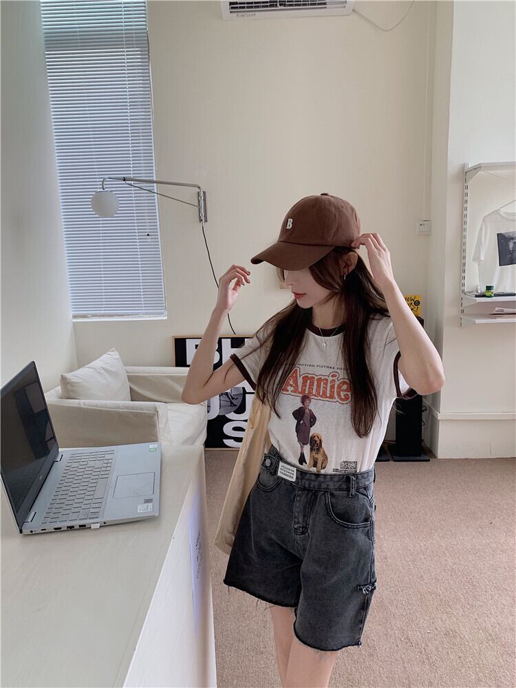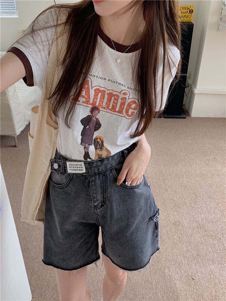 スタンダードジーンズ レディースサマーハイウェストウェストルーズ薄手パンツ ショーツ レトロ 夏物 ブルマー モンロー71927523960