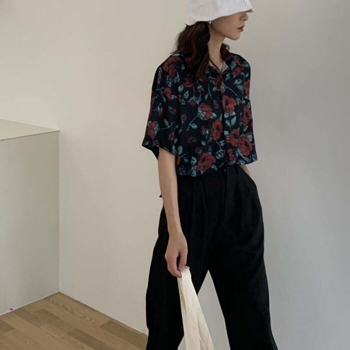 スタンダードフローラルシャツ サマー薄手ジャケット レトロ 夏物 花柄 モンロー98654424833