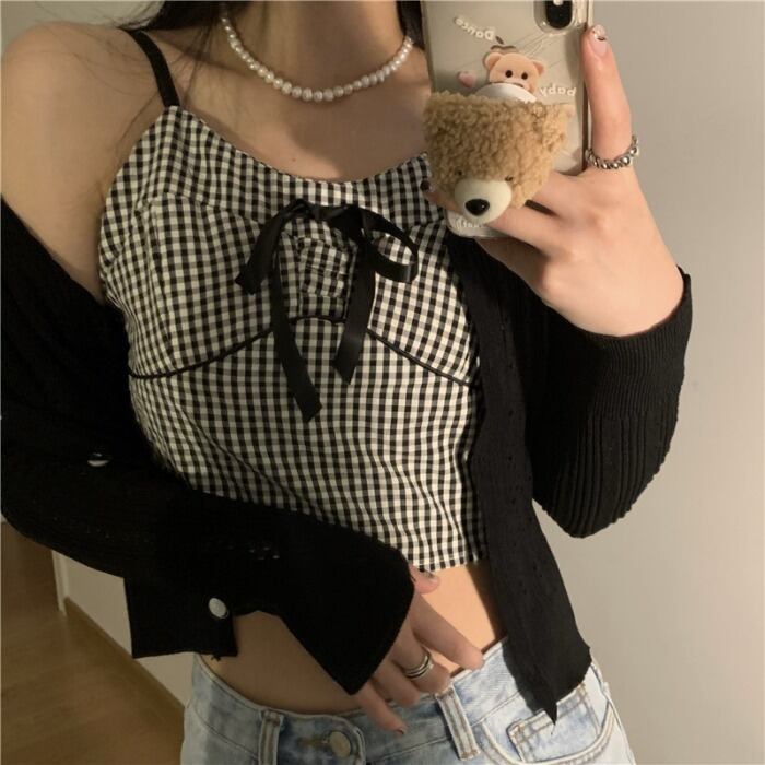 格子柄スリムショートサマートップス 夏物 モンロー37379346720