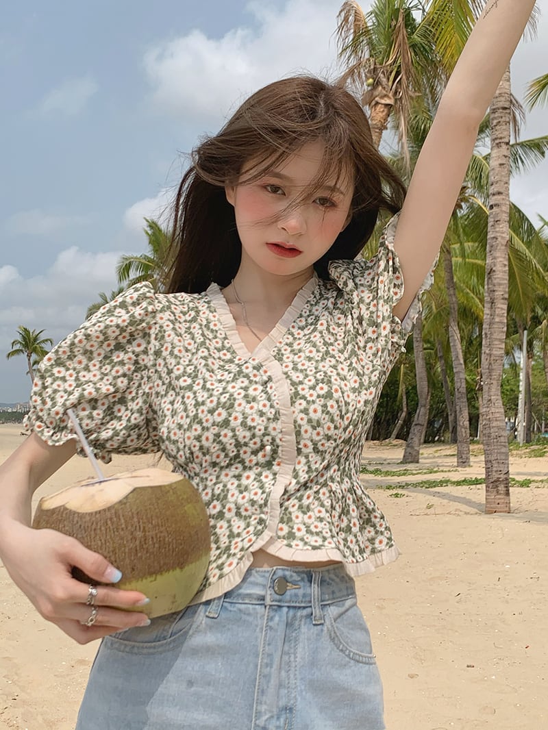ホワイトシャツ ショートサマーハイウェストウェストクロップトップ トップス コート 夏物 モンロー9797281813