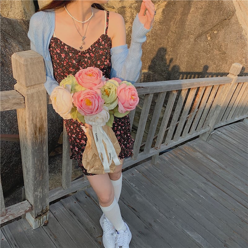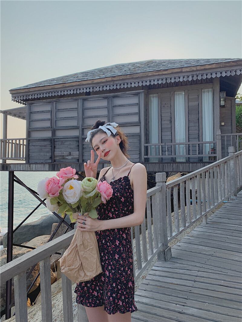 フローラルドレス スタンダードスカート サマーショートスリム レトロ 大人ガーリー スウィート キュート カジュアル 夏物 花柄 モンロー42566549385