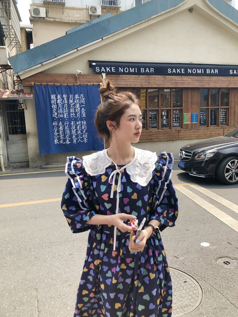 色:白いドレス,ダークブルーのドレス,白い人形の襟