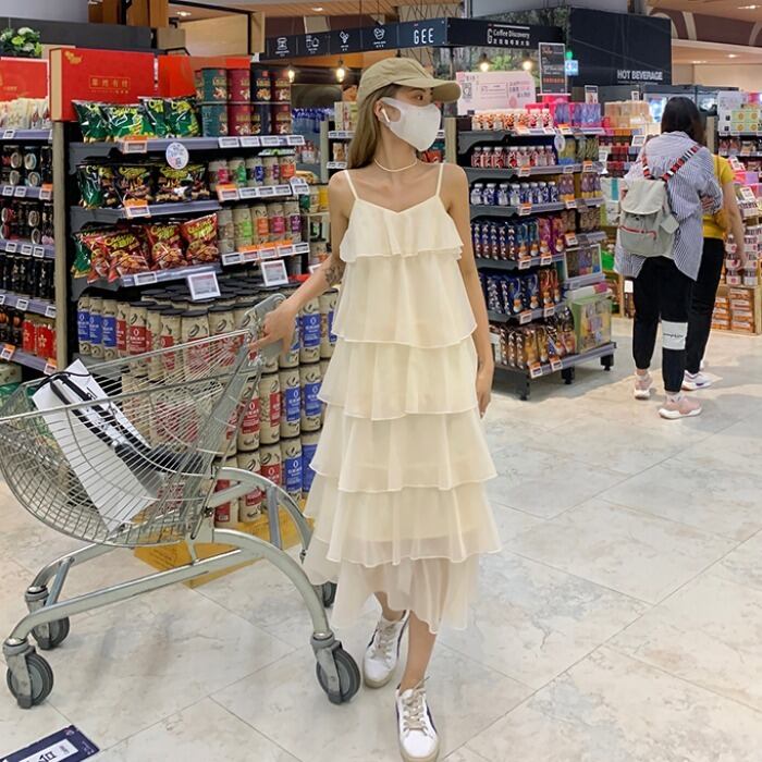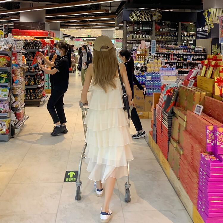 ホワイトドレス スタンダードロングスカート サマー薄手Aライン レトロ 夏物 モンロー28681532455