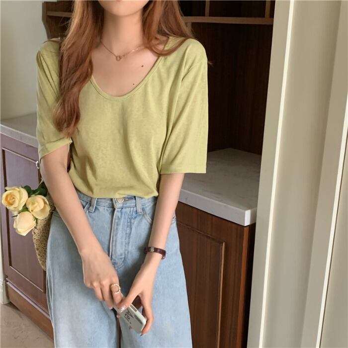 カラーTシャツ ルーズサマーカジュアルトップス 夏物 モンロー61986828377