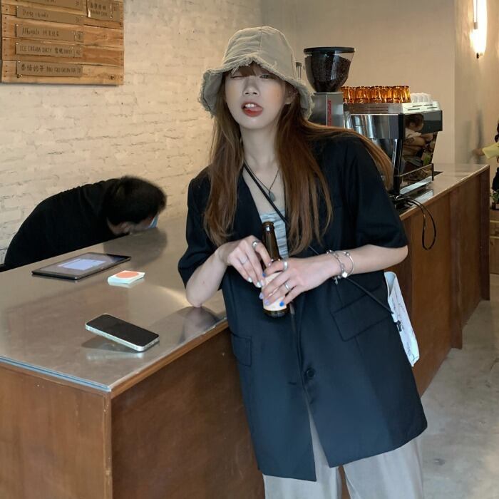 ブラックジャケット カジュアルサマートップス ストリート 夏物 モンロー40819667568