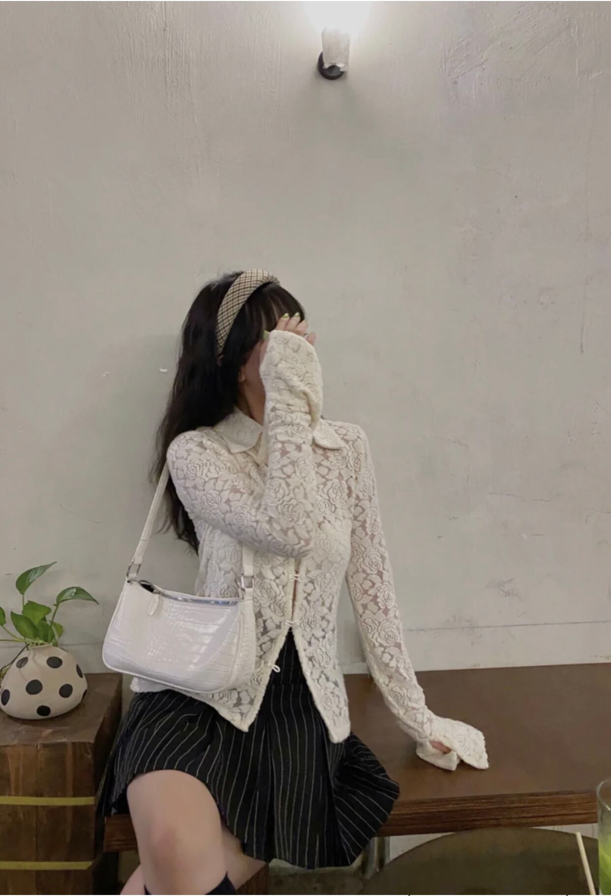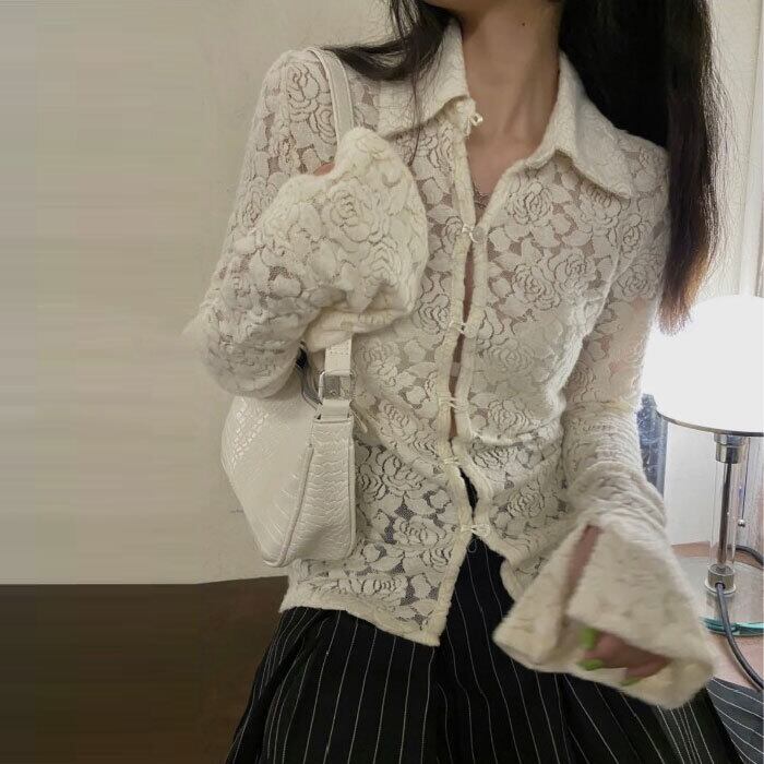 レースシャツ サマー薄手スタンダードジャケット ロング レトロ 夏物 モンロー17733659774