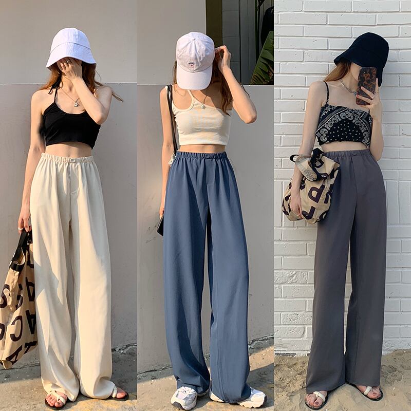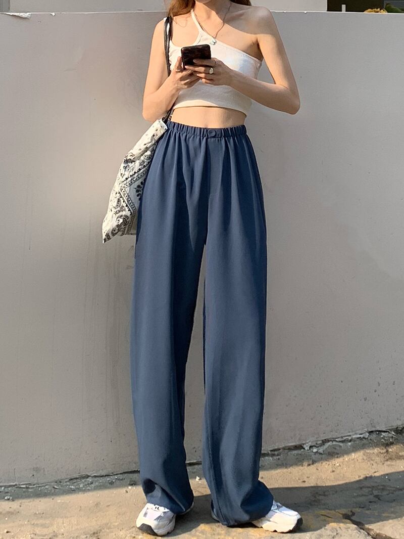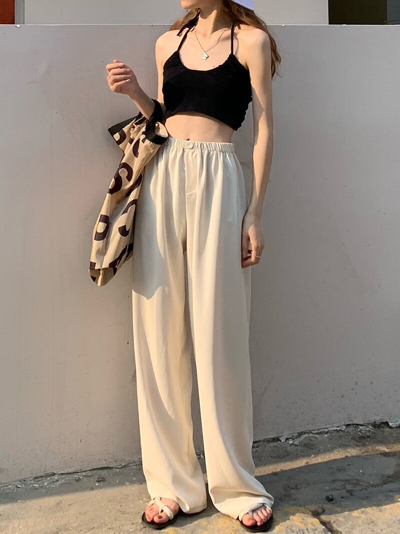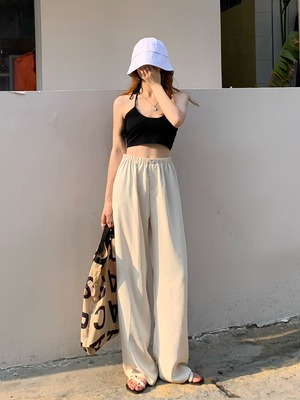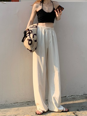ウェストスリムカジュアルパンツ 薄手サマールーズワイドレッグ 夏物 ワイドパンツ モンロー57901398188