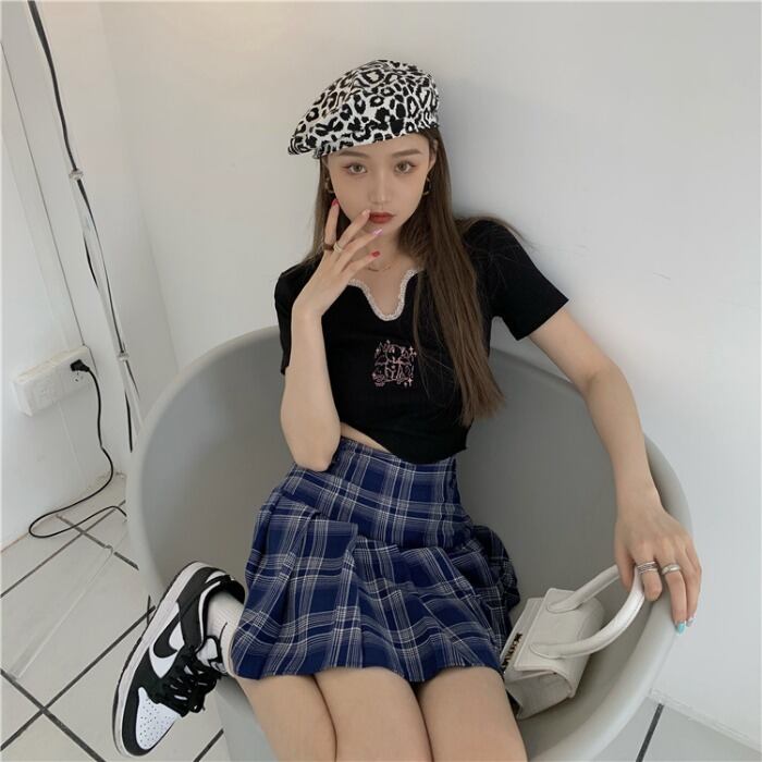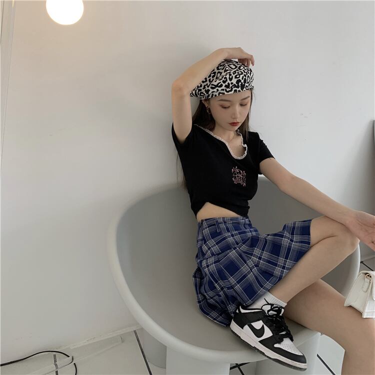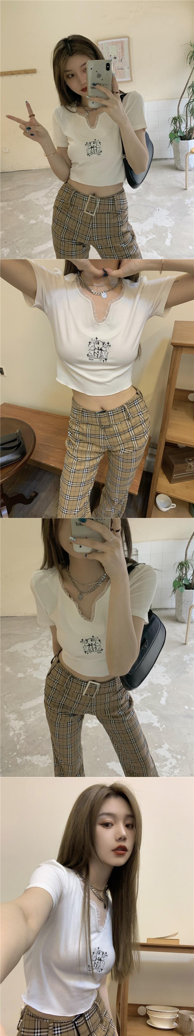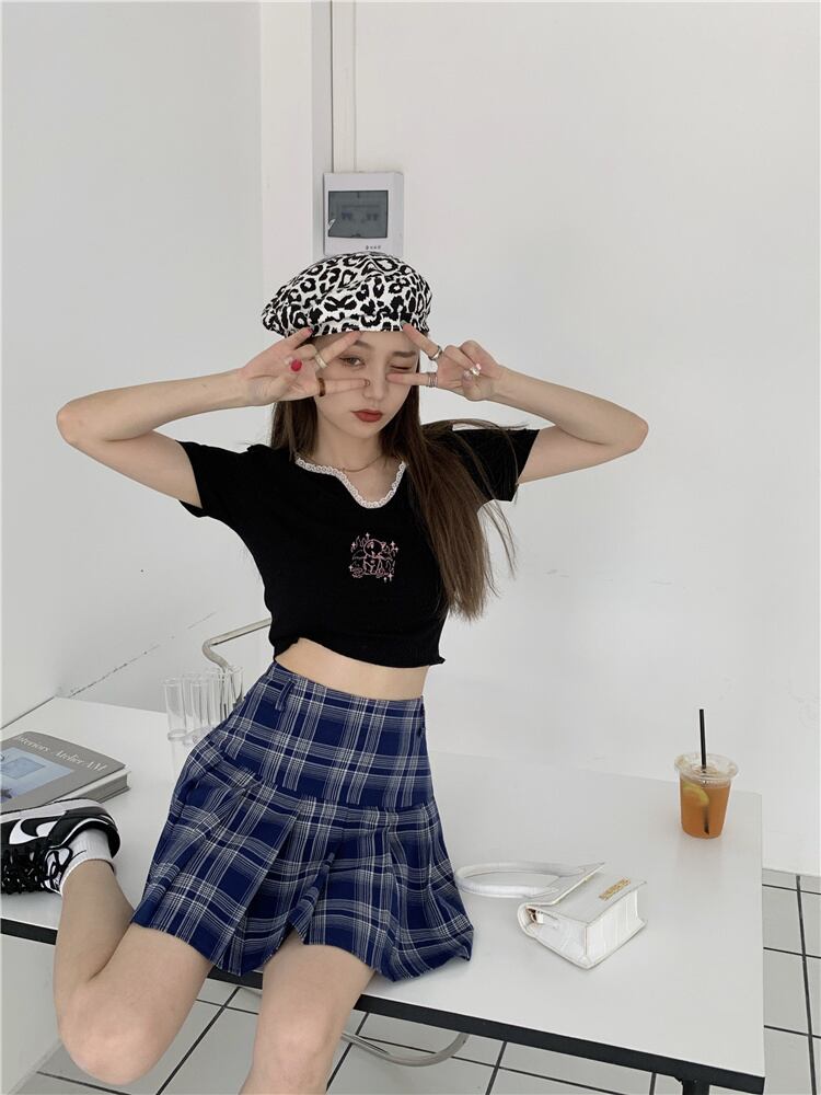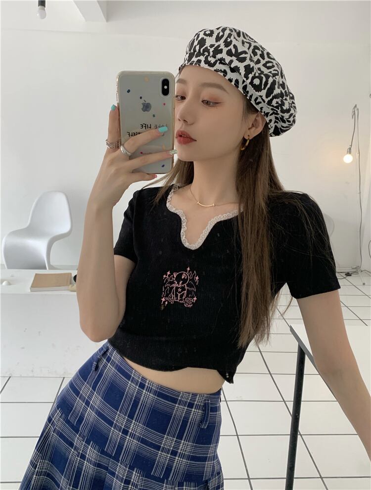 ブラウス スタイルスリムショートサマーハイウェストTシャツ 夏物 モンロー19736659604