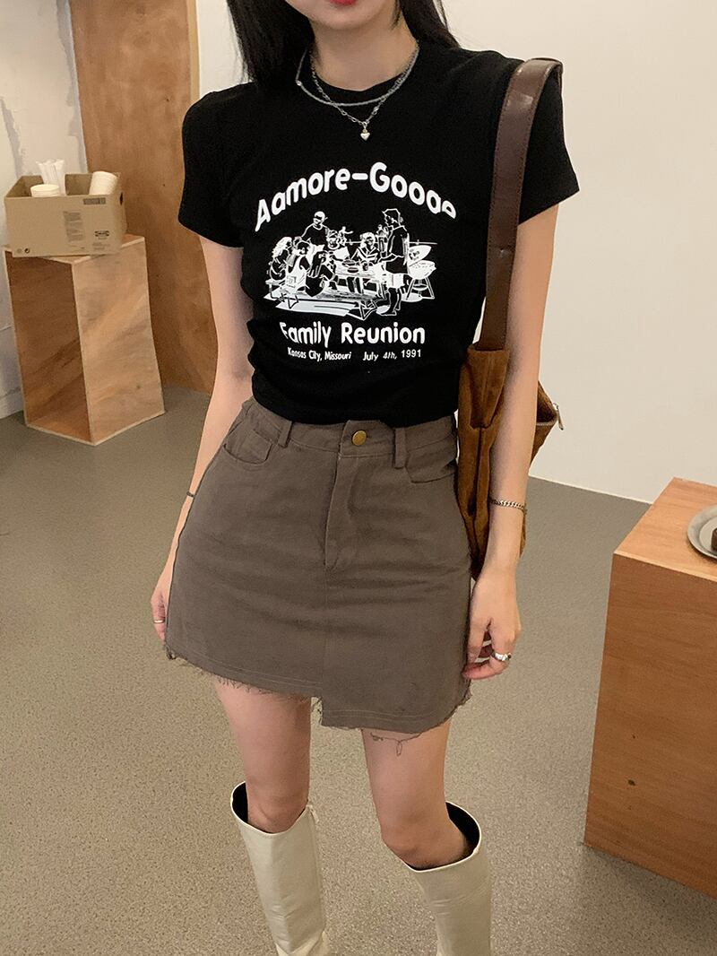 ショートTシャツ サマースリムハイウェストウェストクロップドトップス 夏物 モンロー14229975279