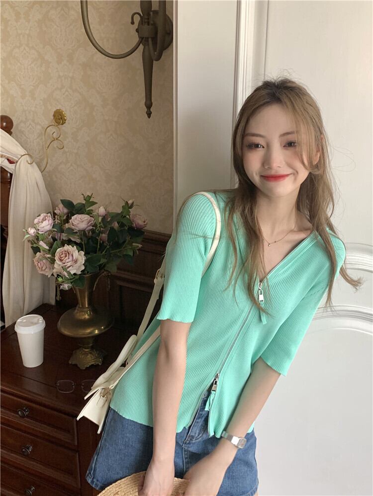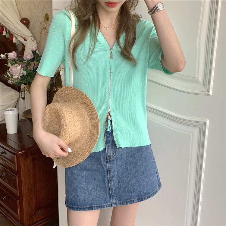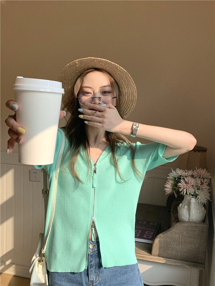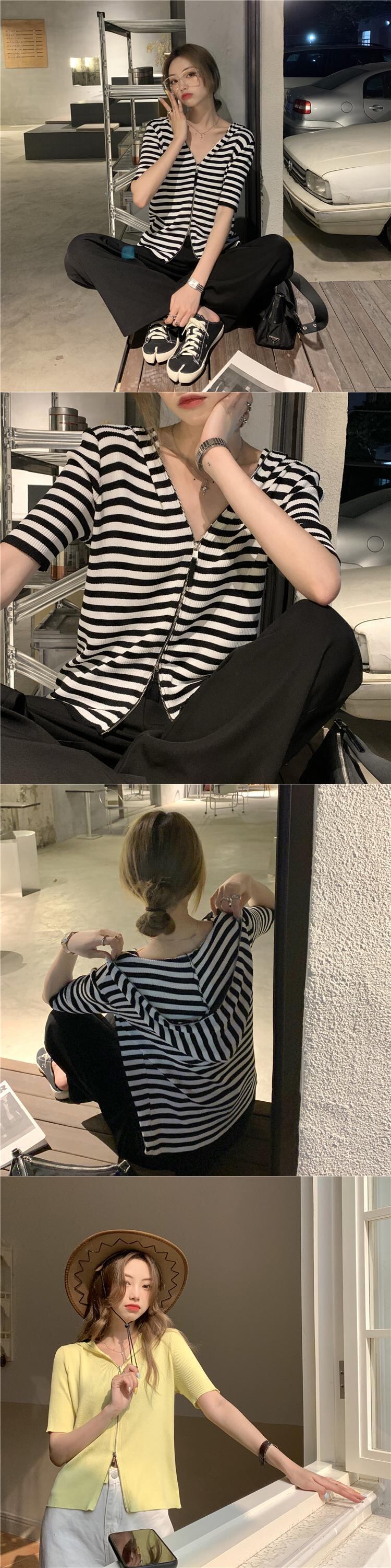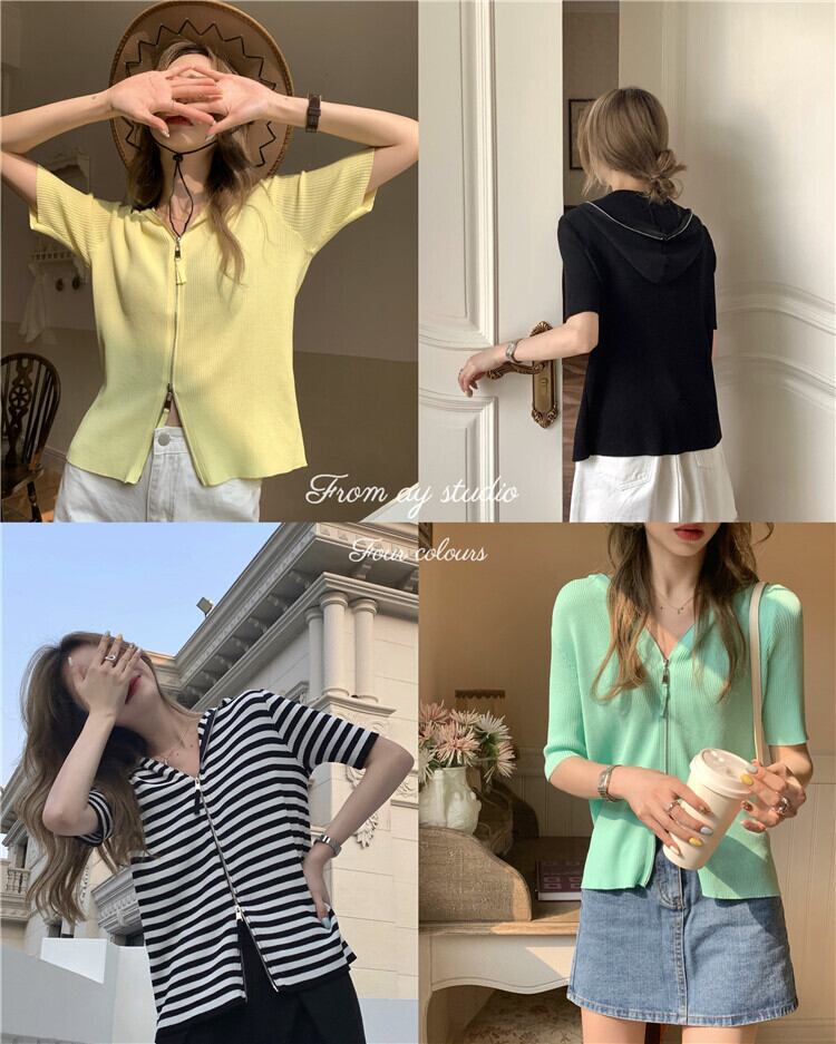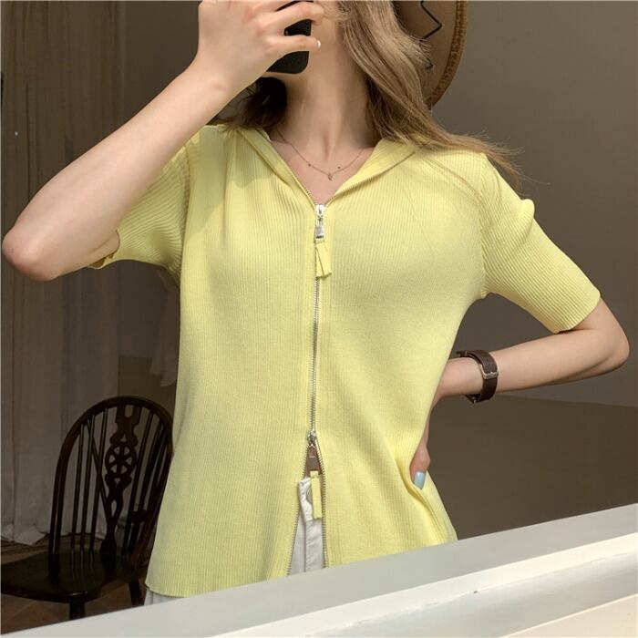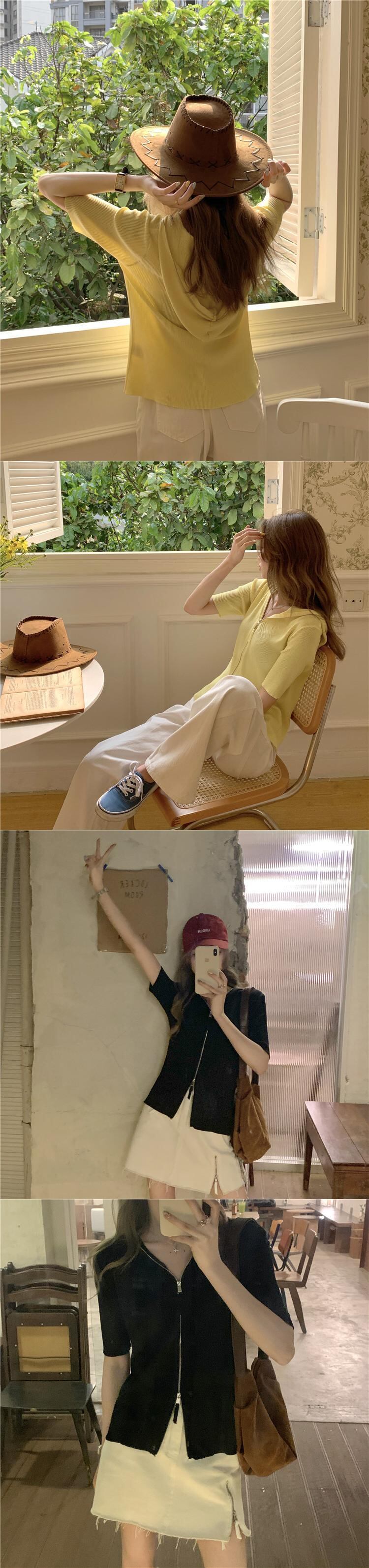 ショートセーター レディーススタンダードフードカーディガンジャケット スプリングサマースタイルスリム レトロ 春物 夏物 モンロー23327311311