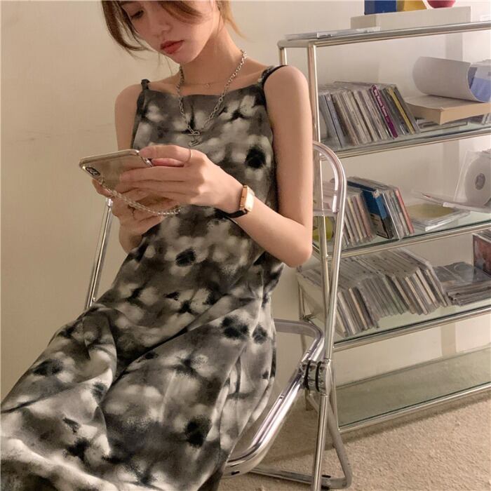 スタンダードバックシフォンドレス サマーロングスカート 薄手 レトロ 夏物 モンロー47052734662
