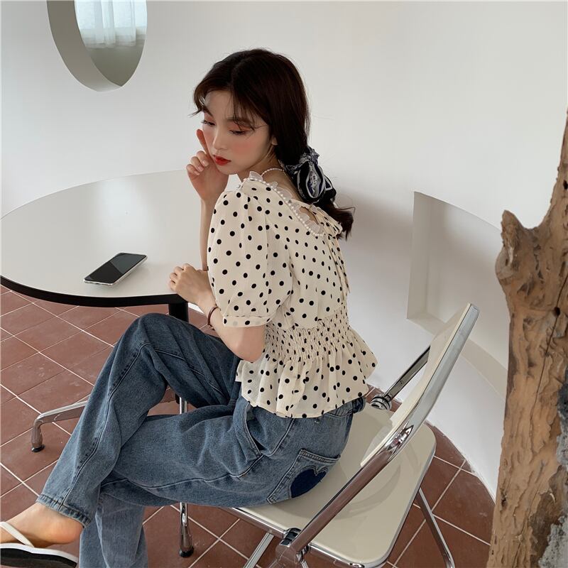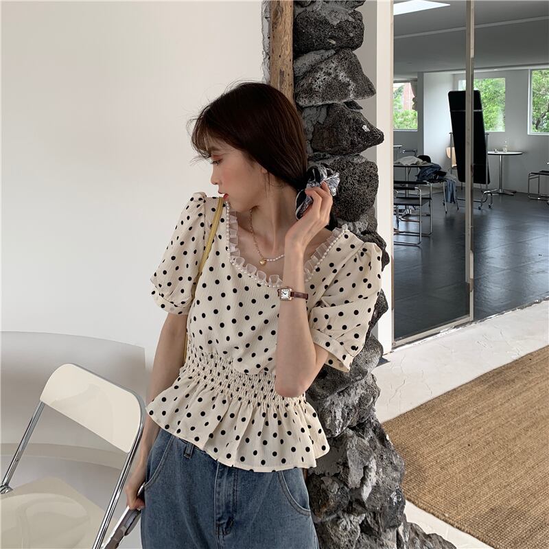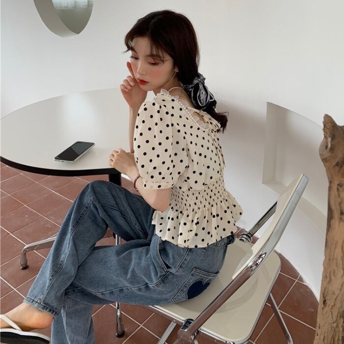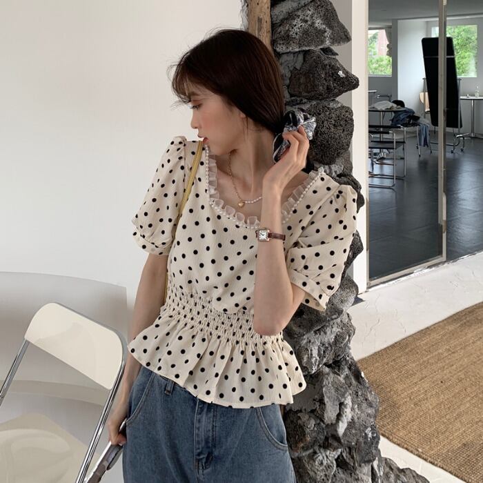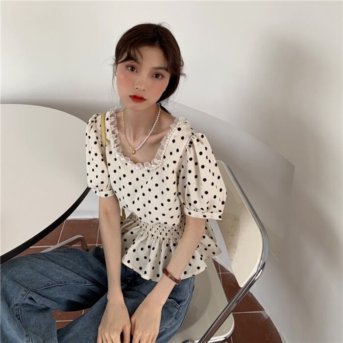 ショートブラウス レディーススタンダードカラーシャツ サマー レトロ 夏物 スクウェア モンロー74175351593