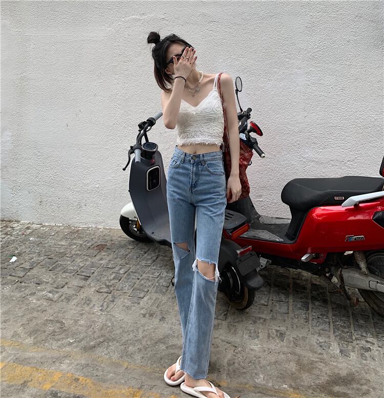 ウェストスリムパンツ ジーンズ サマールーズ レッド 夏物 モンロー43248862087