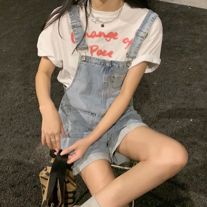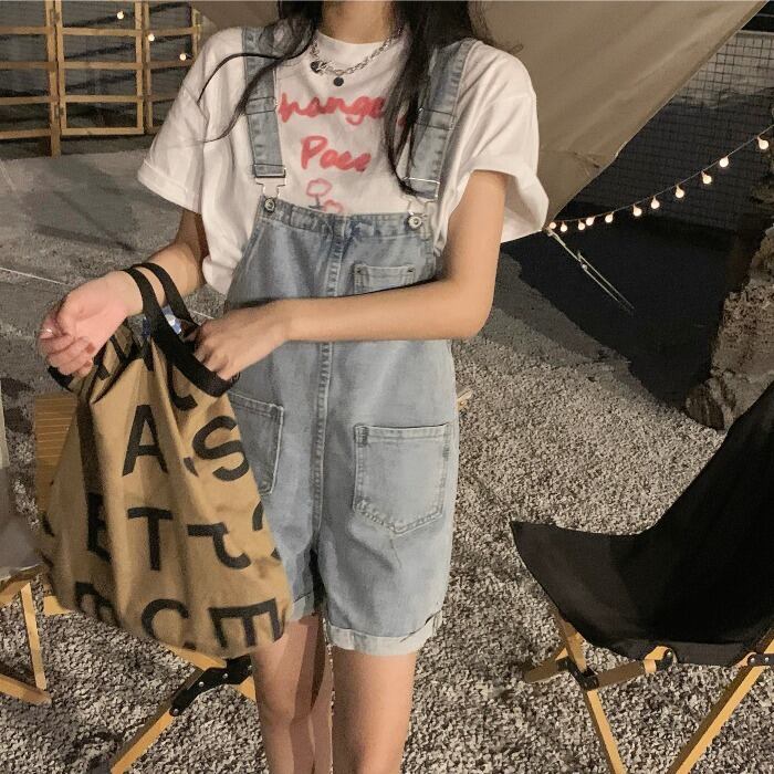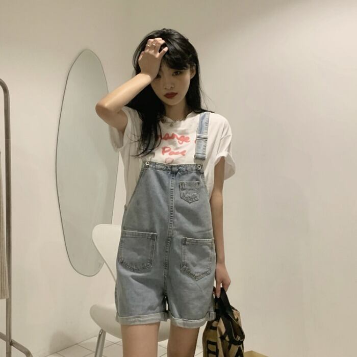 オーバーオール サマージーンズ ルーズパンツ ハイウェストショーツ 薄手 夏物 ブルマー モンロー32012696693