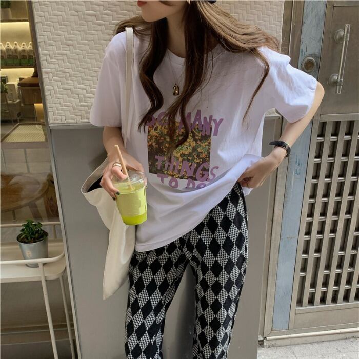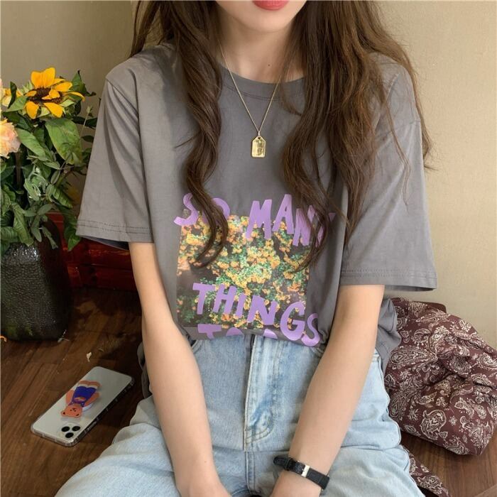 グレープリントルーズTシャツ サマー コットン 夏物 ピュア モンロー98035217499