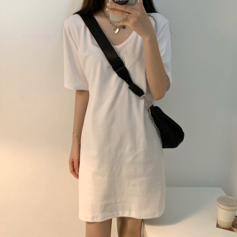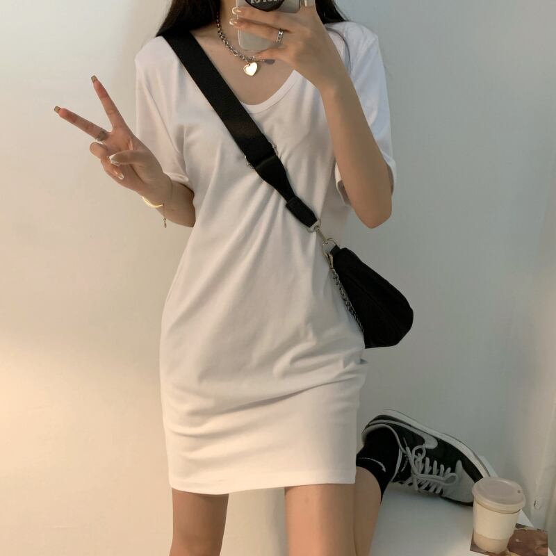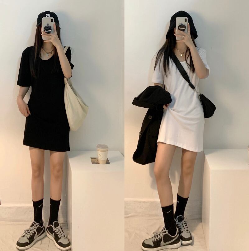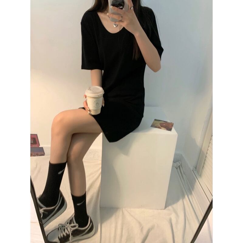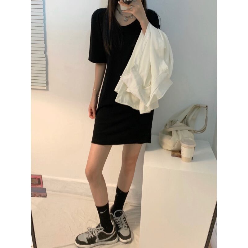 ホワイトTシャツ スカート サマースリムブラックドレス 夏物 モンロー68453842635
