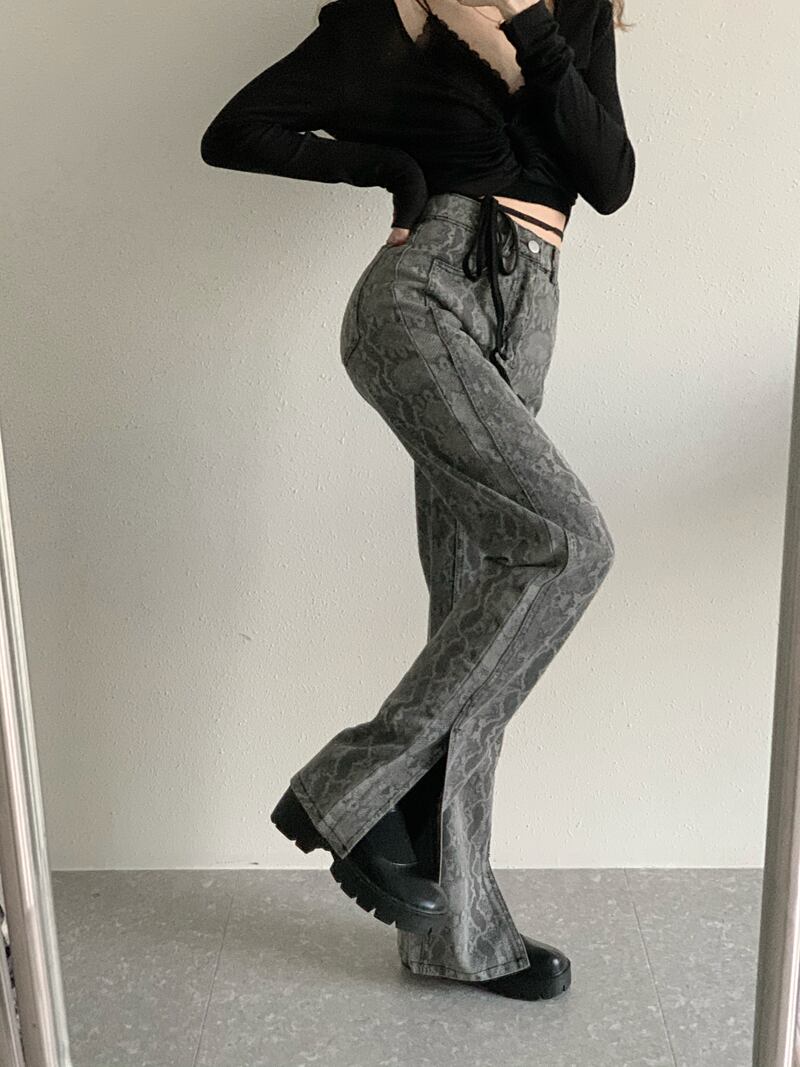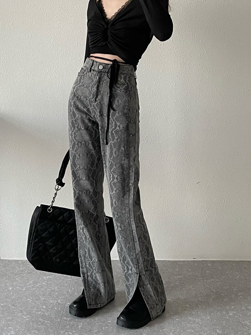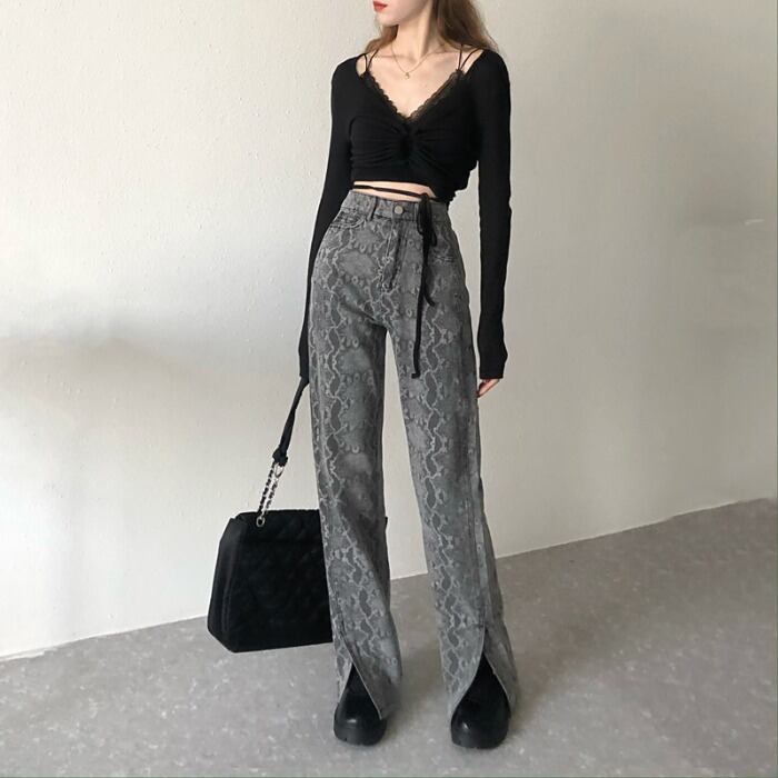 ブラックジーンズ ルーズパンツ サマーハイウェスト薄手 夏物 モンロー37105890074