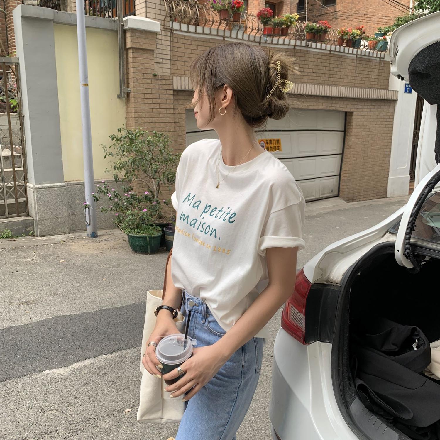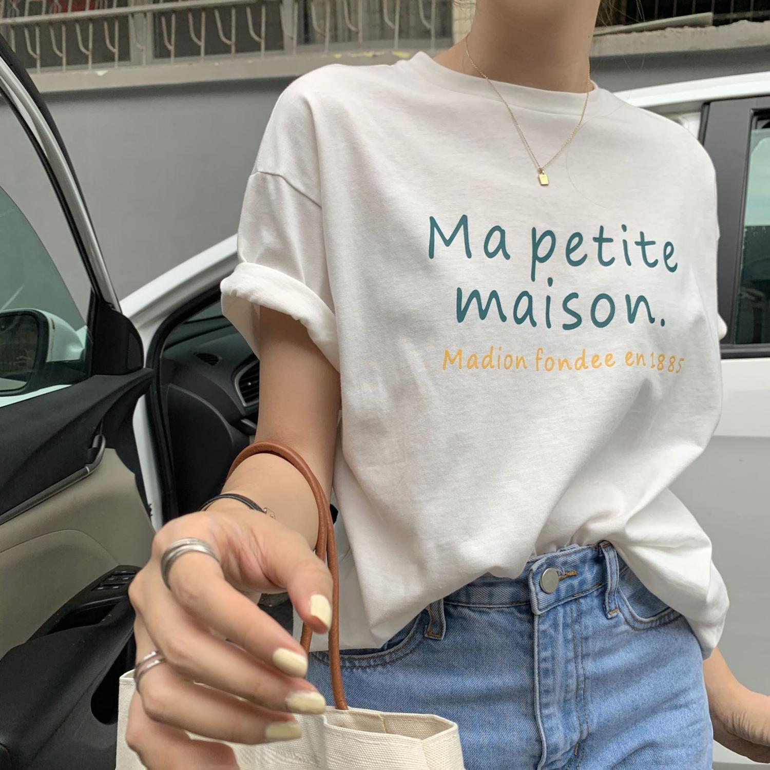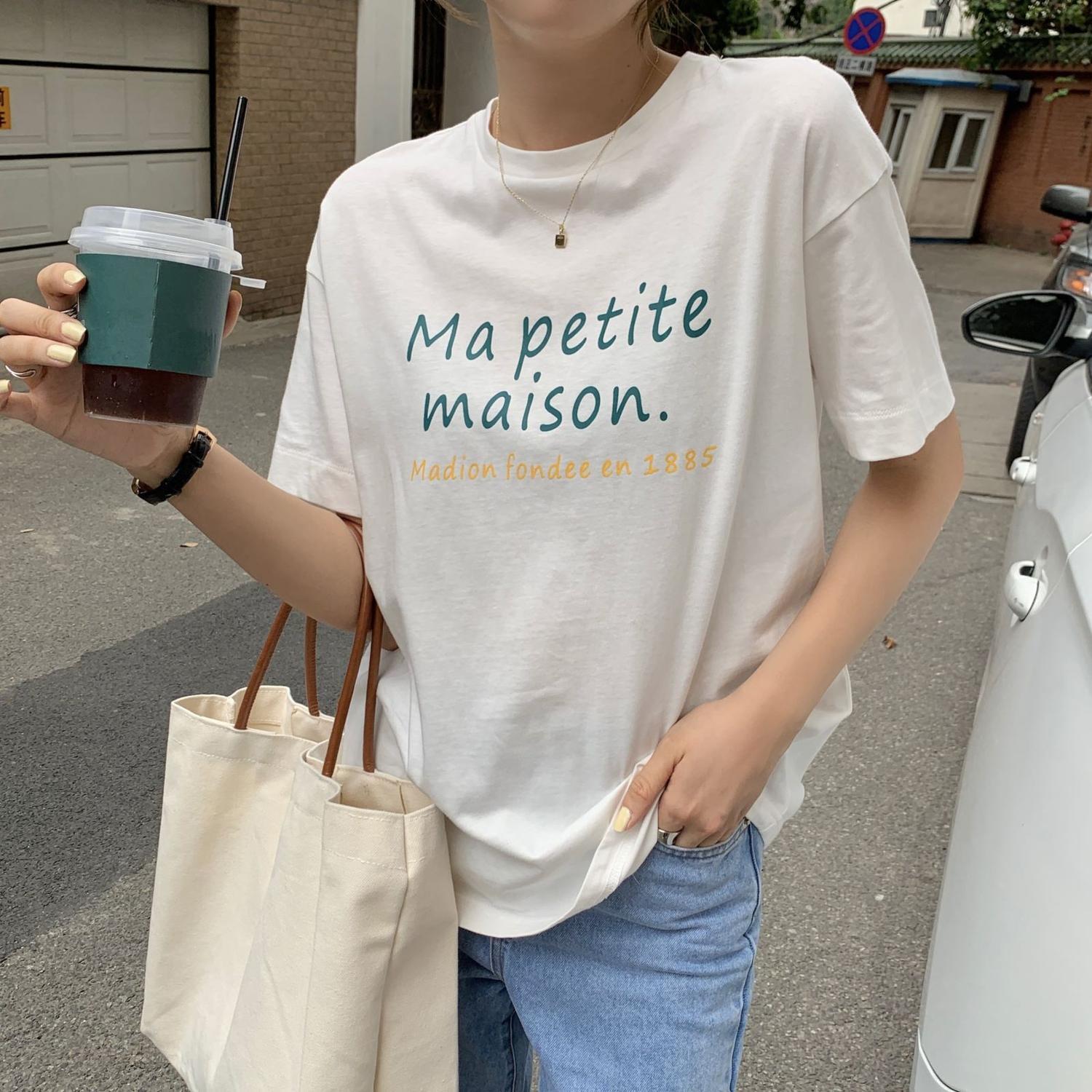 ホワイトTシャツ サマールーズトップス コットン 夏物 ピュア モンロー75167126644