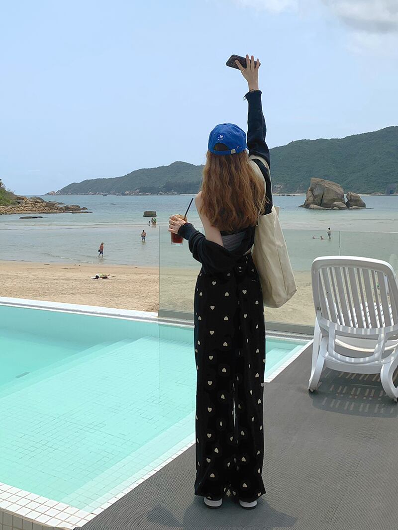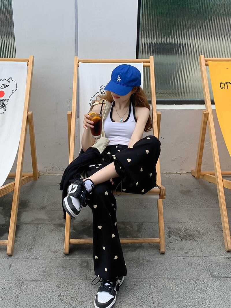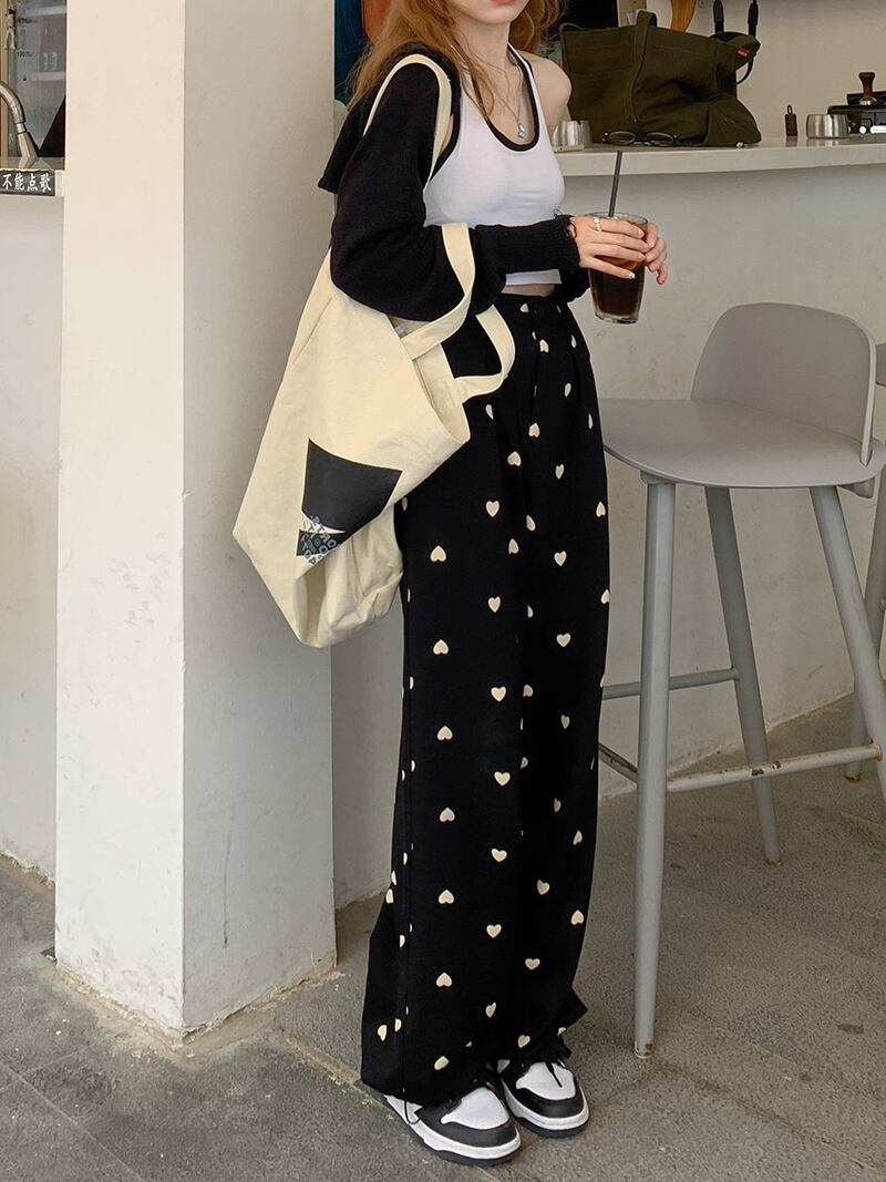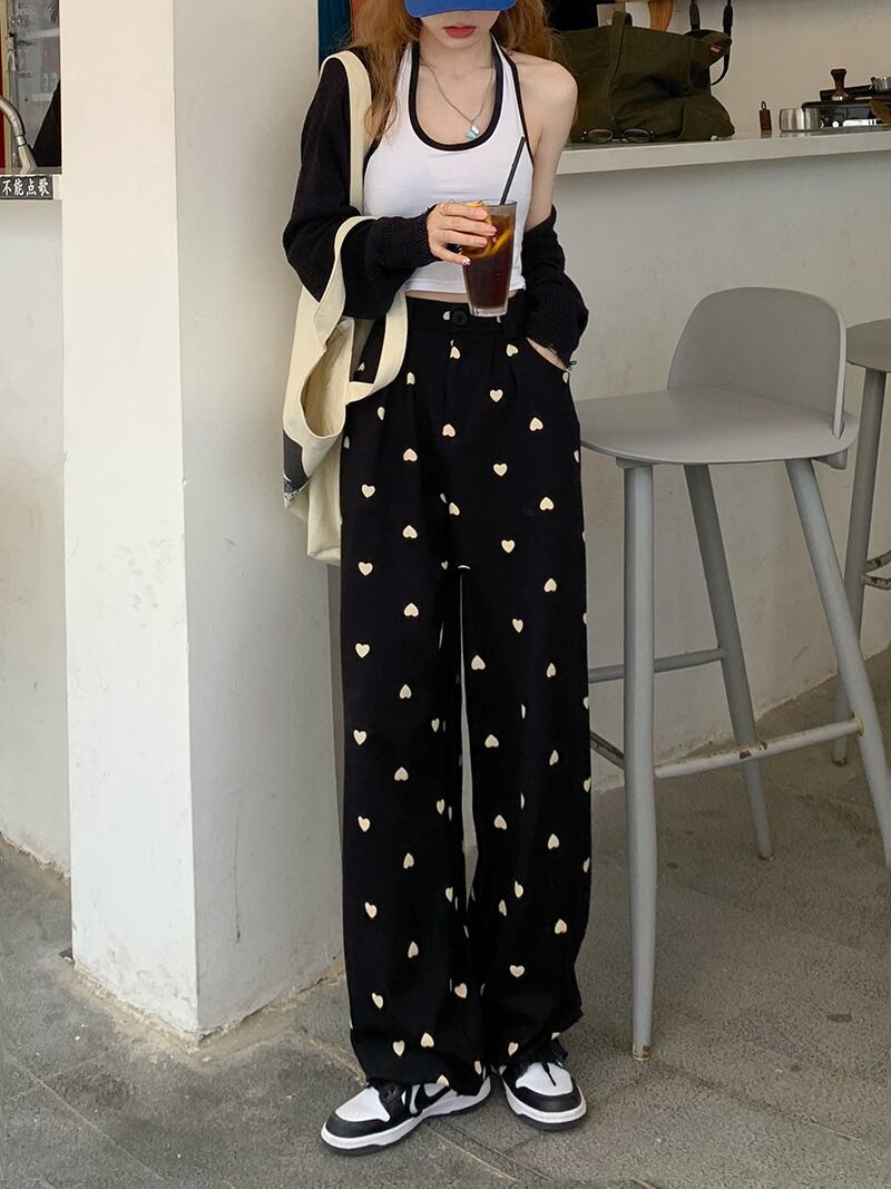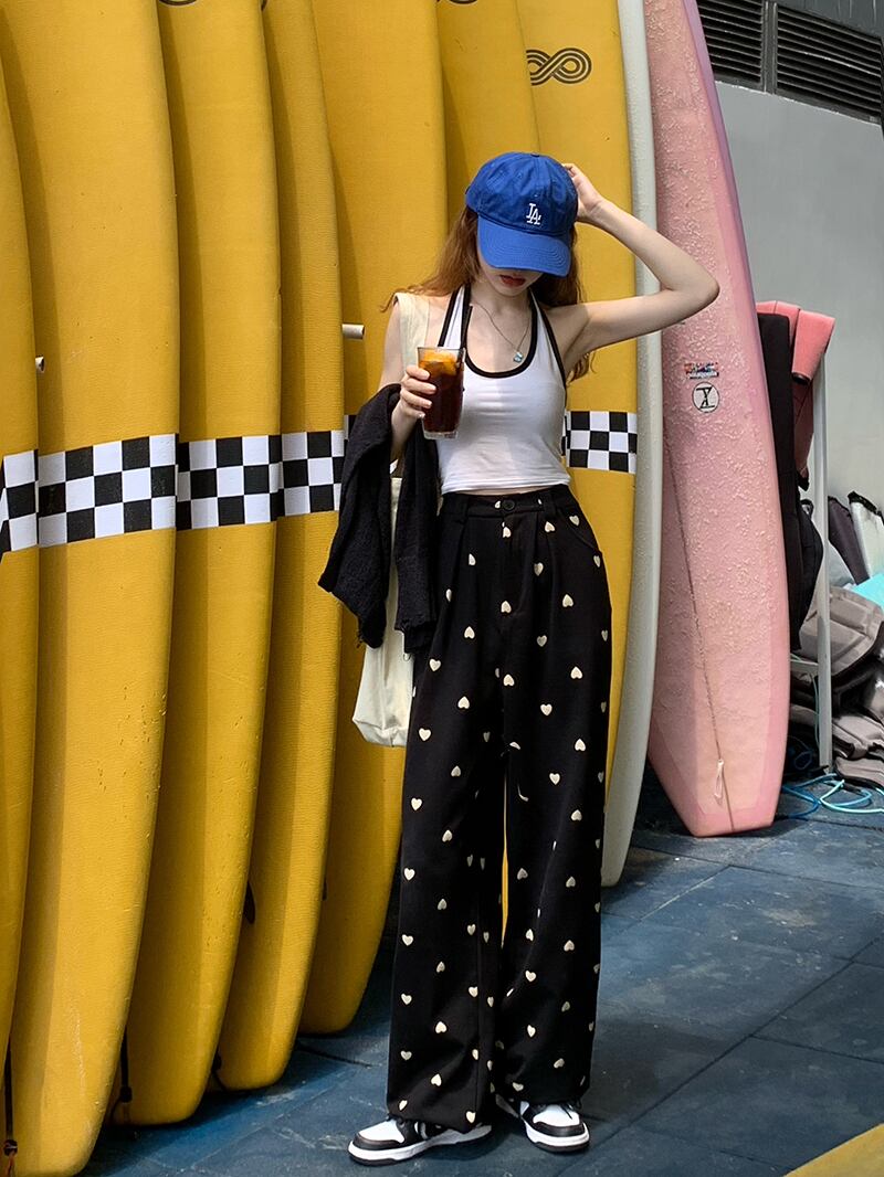 ブラックカジュアルパンツ スプリングサマーハイウェスト薄手ルーズ 春物 夏物 モンロー50257361919