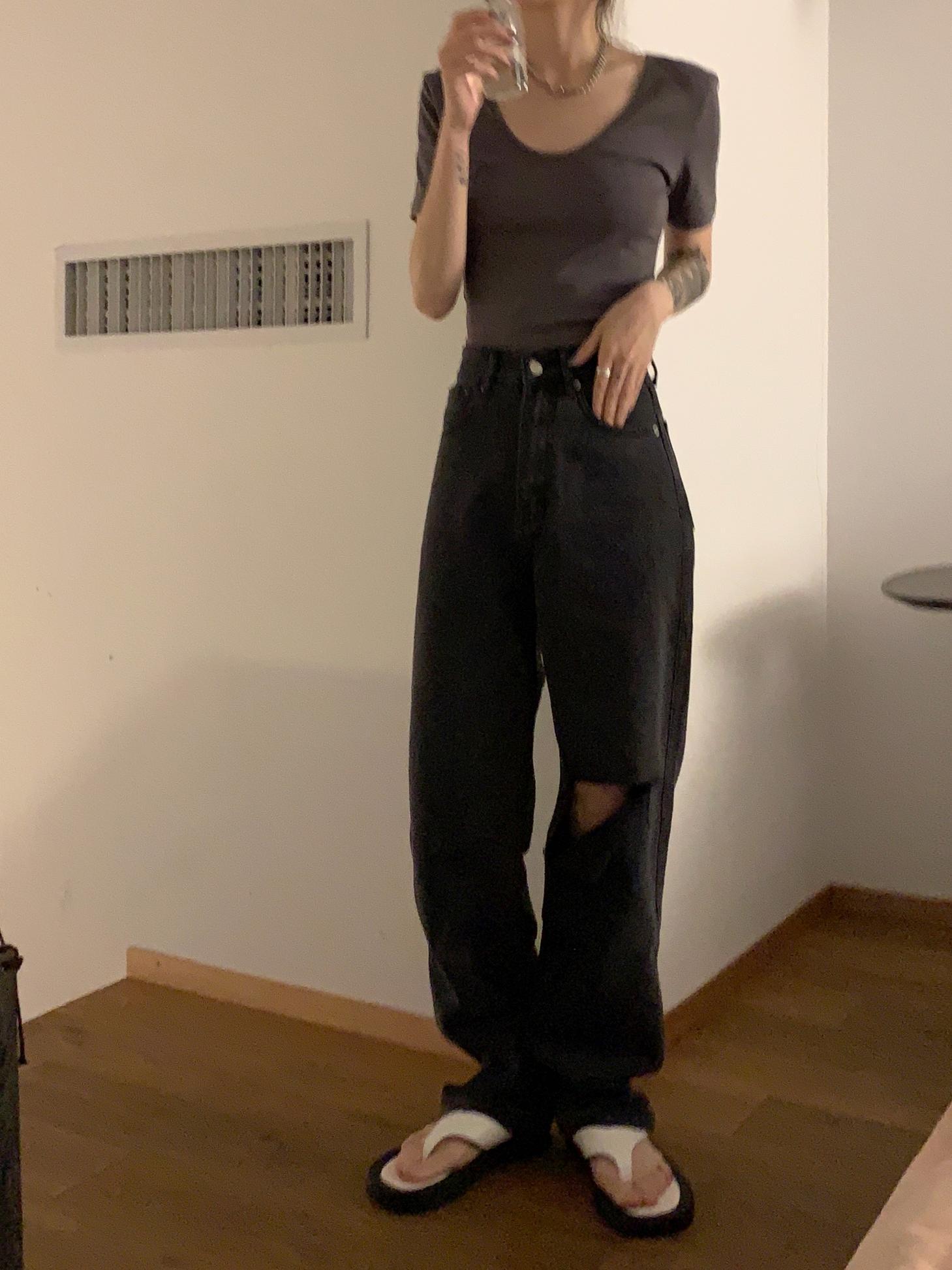 ブラックジーンズ サマールーズパンツ ハイウェスト 夏物 モンロー68013203725