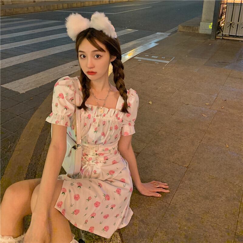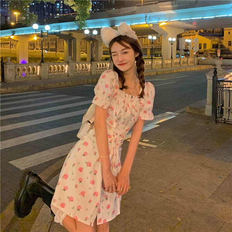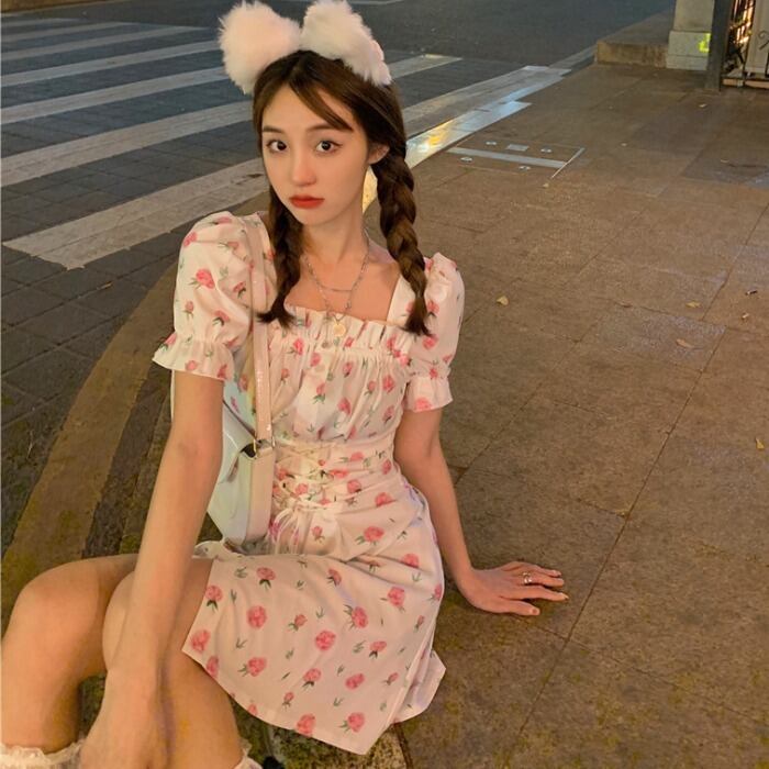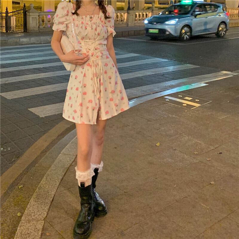 ドレス スタンダードフローラルスカート サマーショート薄手Aライン レトロ 大人ガーリー スウィート キュート カジュアル 夏物 花柄 モンロー12335721081
