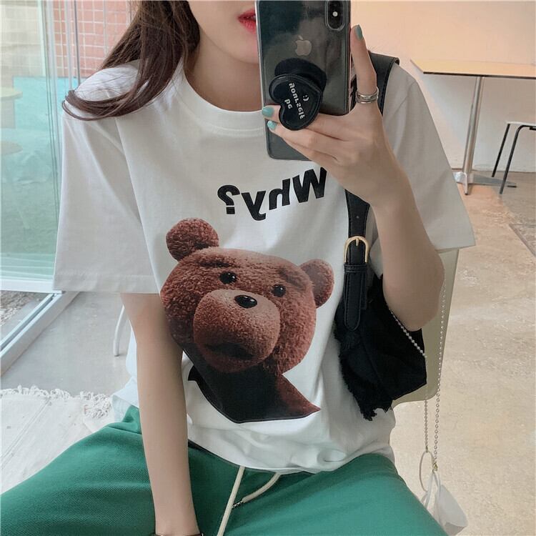 Tシャツ サマールーズホワイトトップス コットン 夏物 ピュア モンロー89568927637