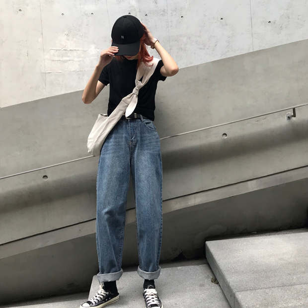 スプリングハイウェストスタンダードジーンズ ルーズ薄手パンツ レトロ 春物 モンロー5343617
