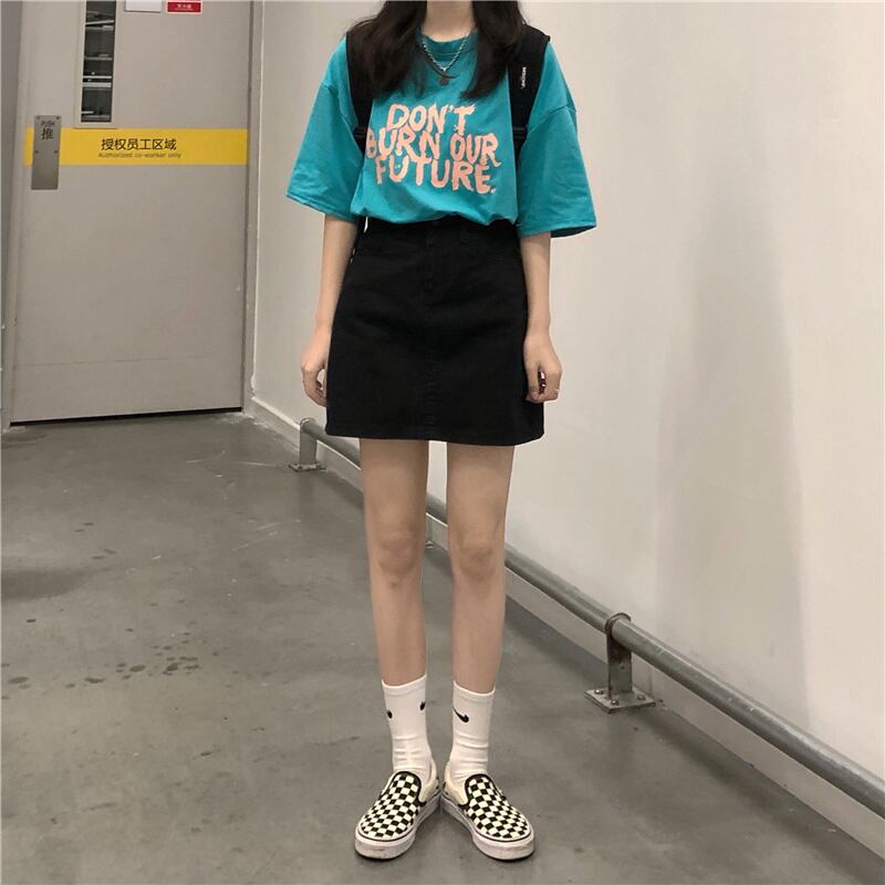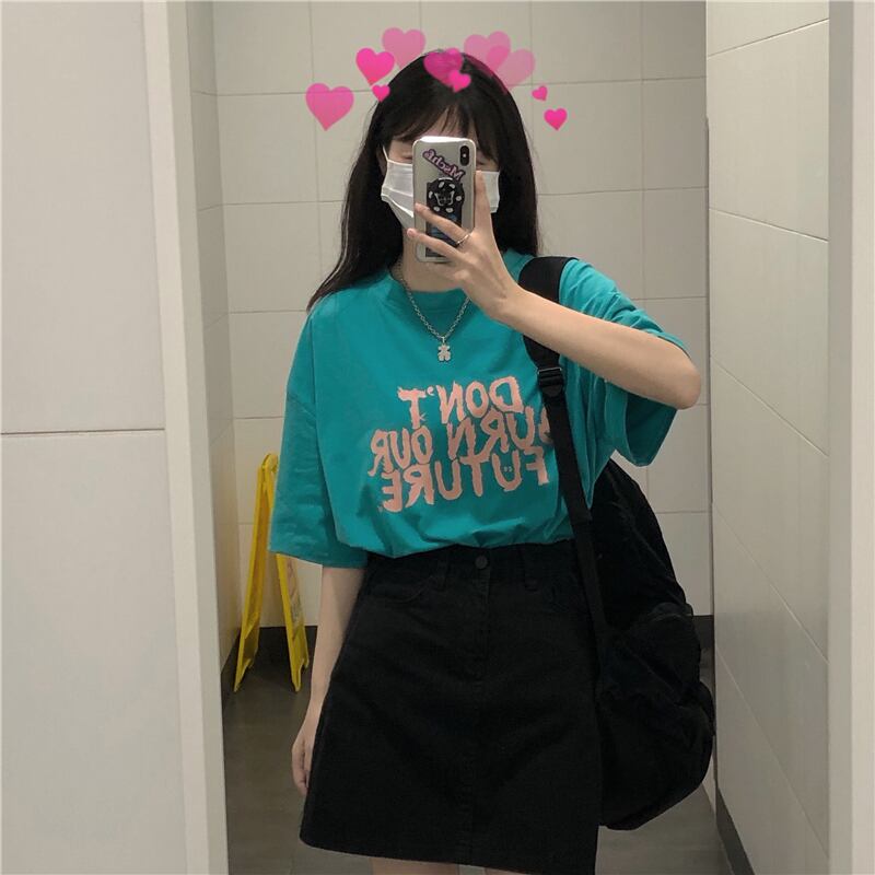 ブラックサマーTシャツ ルーズ コットン 夏物 モンロー12425167120