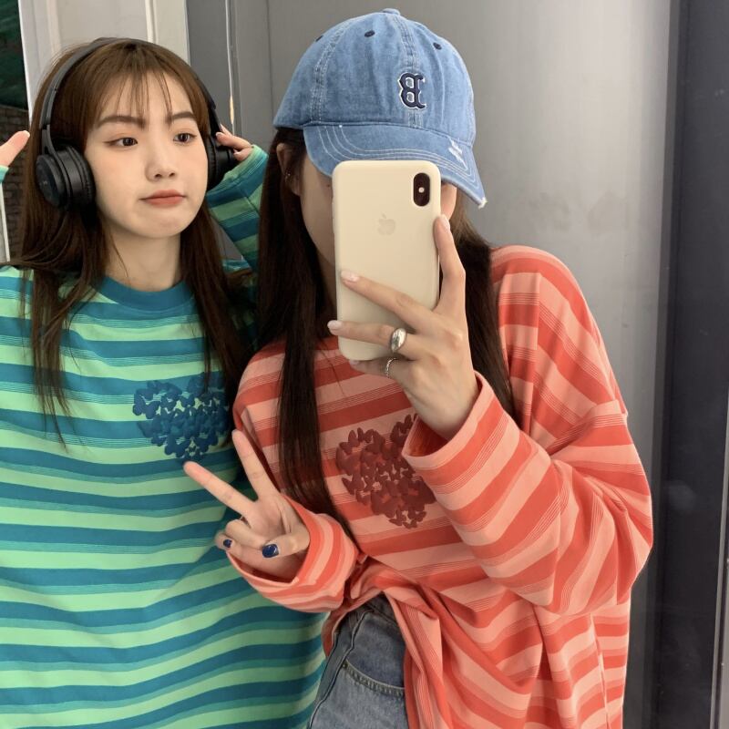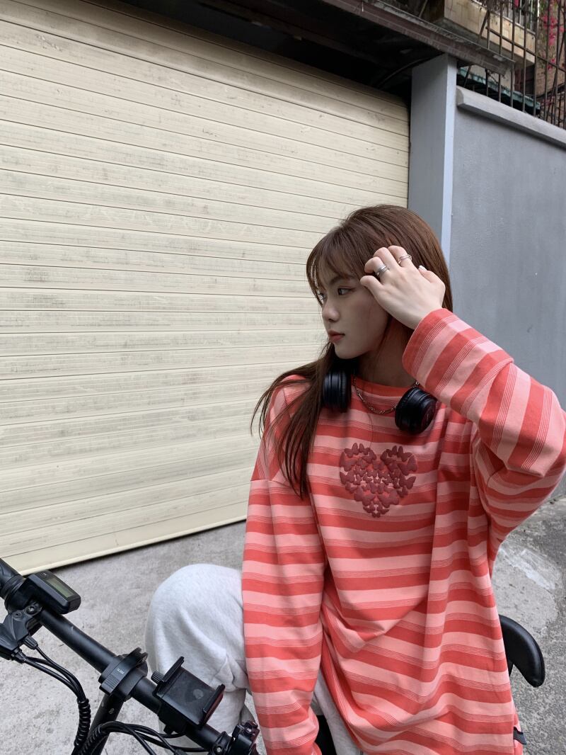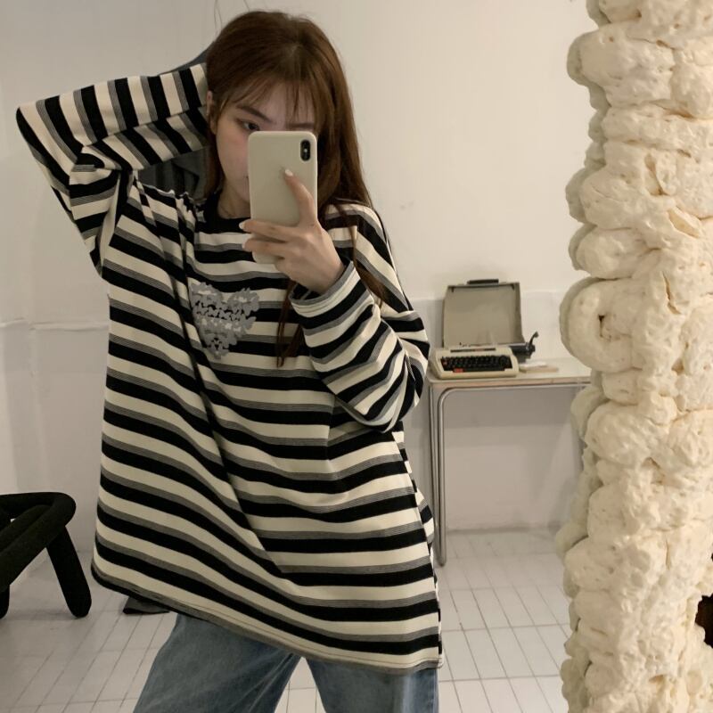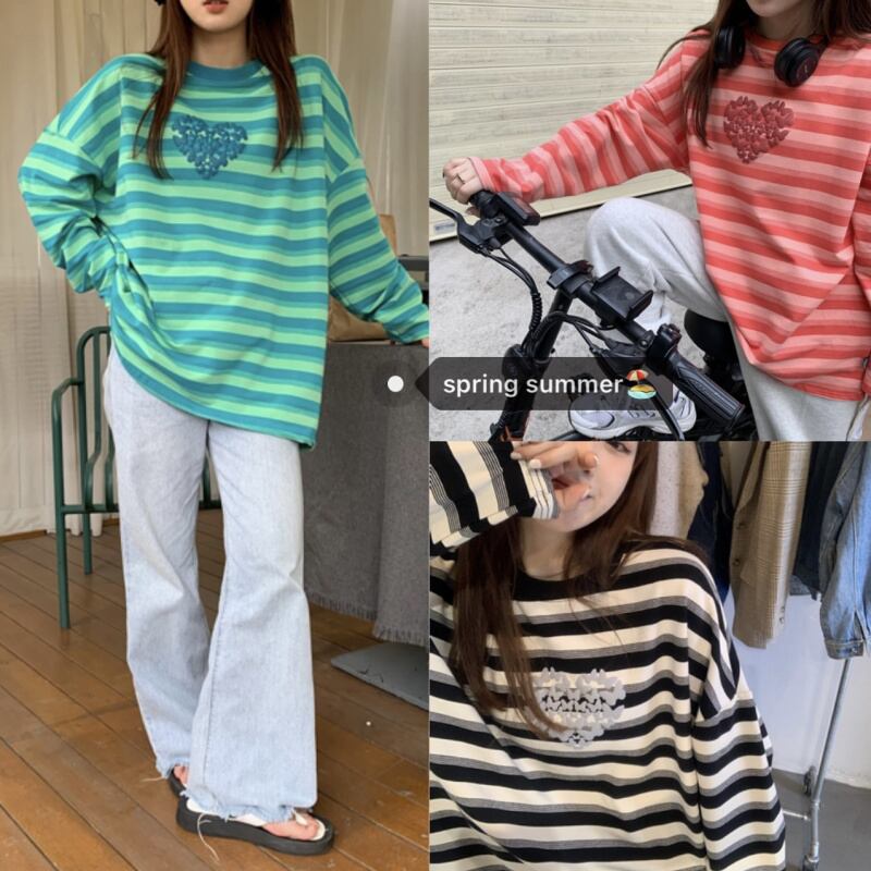 ストライプTシャツ シャツ ルーズトップス スプリング ロング 春物 モンロー39587865021
